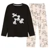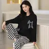 Pijama Urso Desenho Animado Feminina Manga Longa Algodão Roupa de Exterior Pulôver Gola Redonda Feminino Algodão Casual Roupa de Casa terno