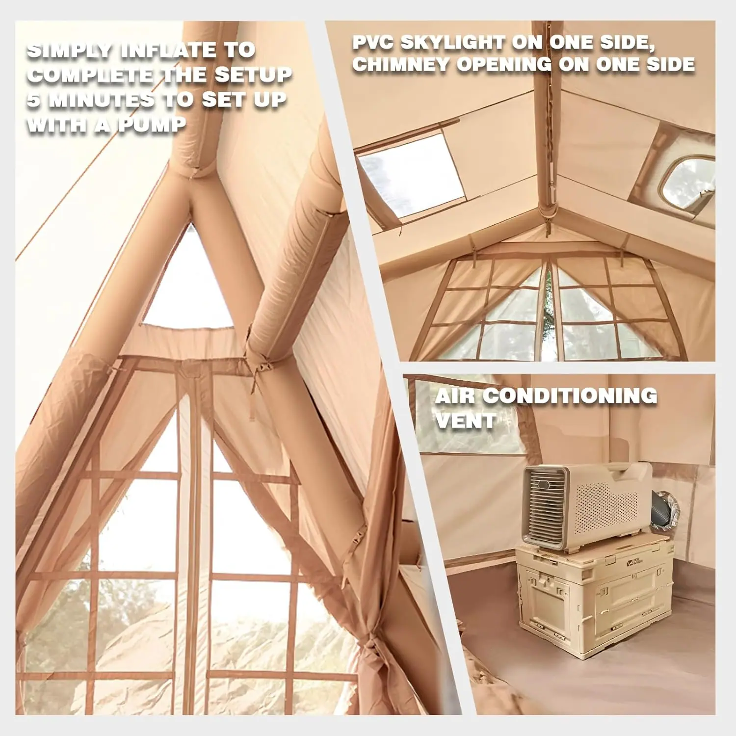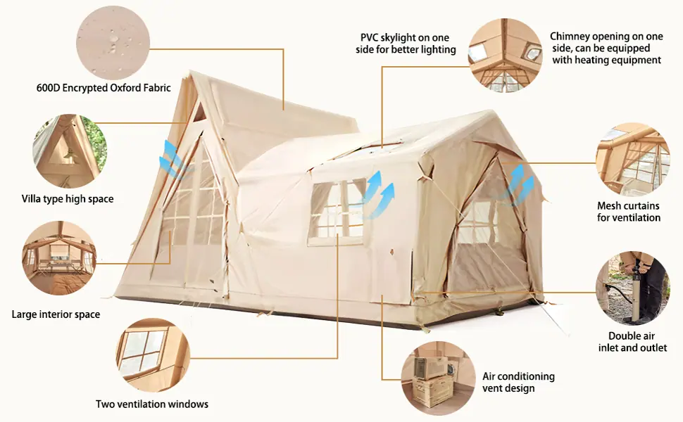 Diga adeus às varetas complicadas e olá ao acampamento sem esforço. Nossa barraca inflável monta em apenas 5 minutos usando a bomba manual inclusa. Projetado para grupos e famílias, combina conforto espaçoso com durabilidade para todos os climas, tornando-o seu lar perfeito longe de casa.