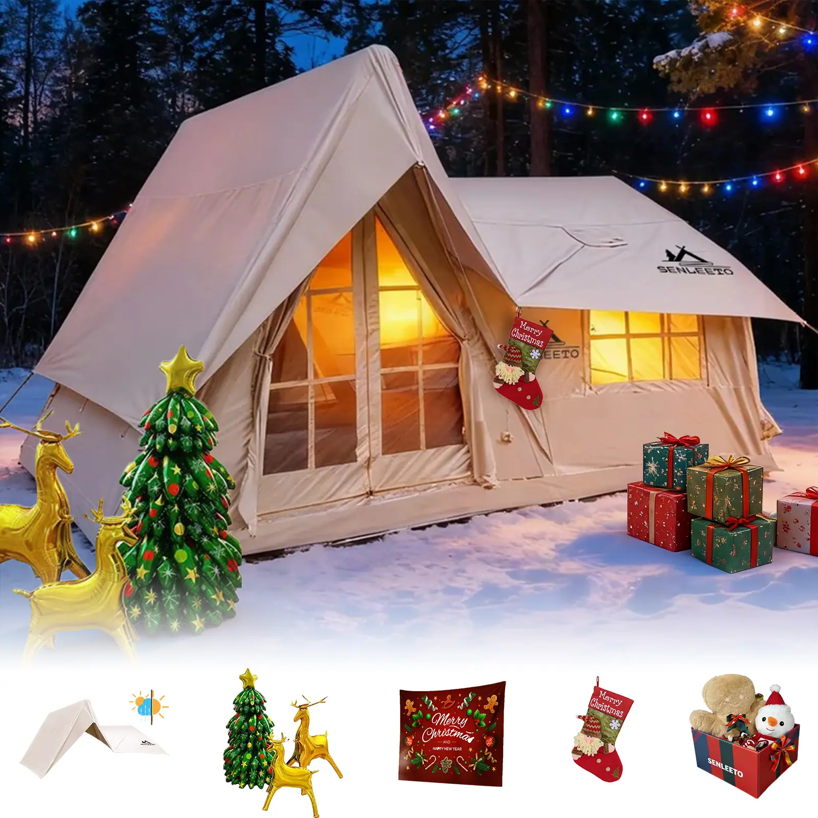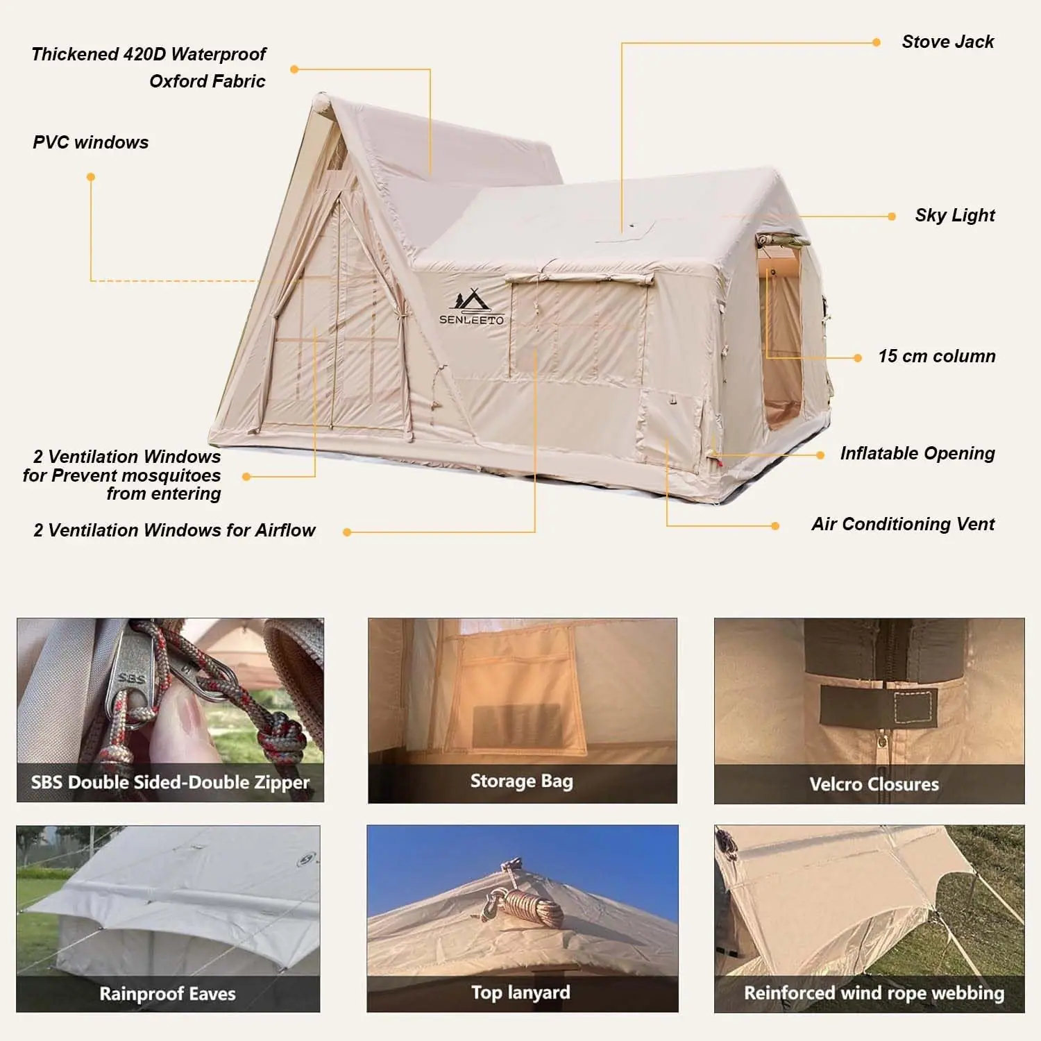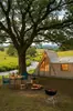 Ventilação e Conforto Superiores: Possui 2 portas e 6 grandes janelas de malha para excelente fluxo de ar e proteção contra mosquitos. O design de camada dupla (hermético e malha) permite que você controle o clima. Inclui um passa-chaminé para aquecimento e cozimento e um respiradouro de teto para ventilação adicional.