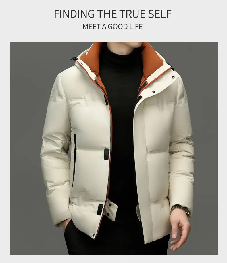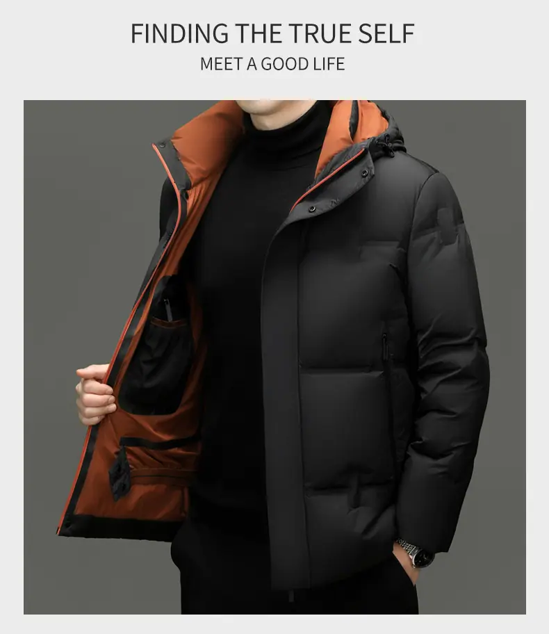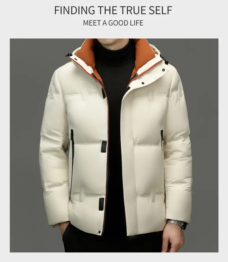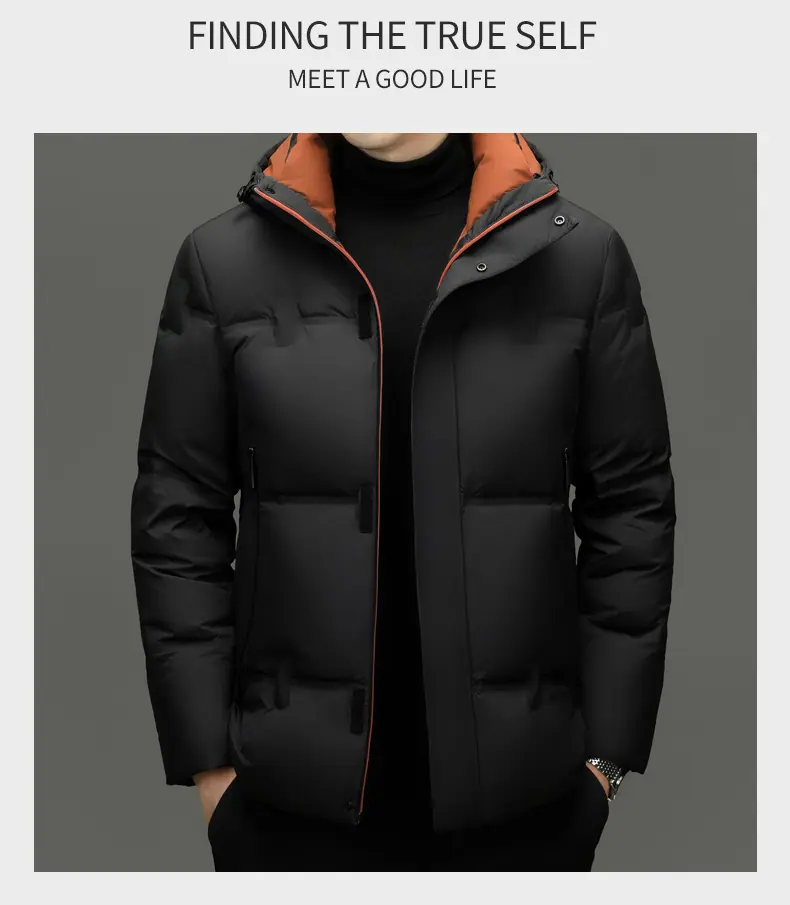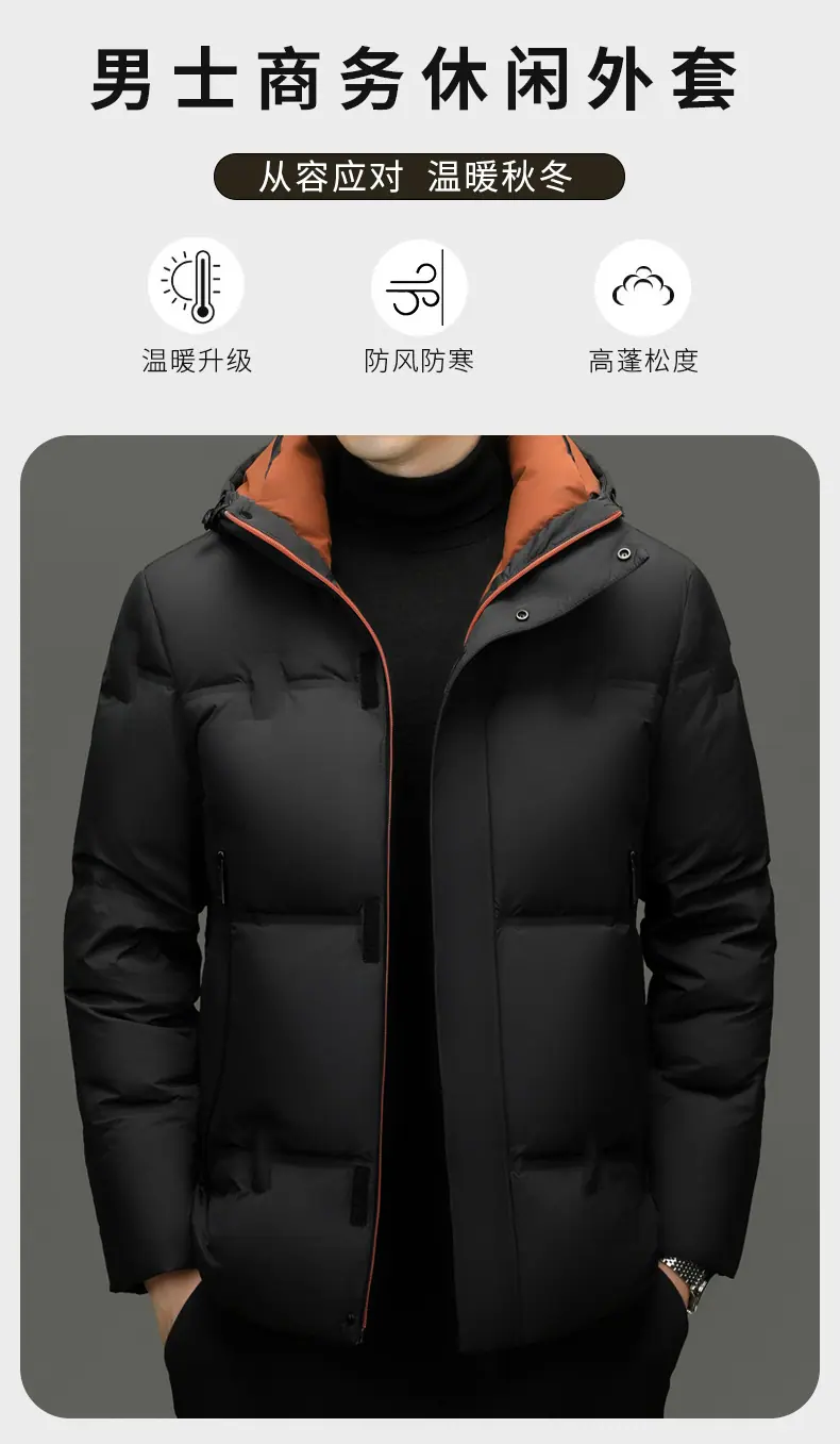 Europeu e Americano High-End 25 Novo Inverno À Prova de Vento e Quente Com Capuz Gola Alta Jaqueta de Penas 90 Jaqueta Ez de Alta Qualidade para Homens