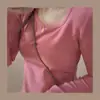 Compre Nova Camiseta Feminina de Manga Longa com Design Espinha de Peixe de Primavera e Outono Algodão Puro Camada Base Decote Quadrado Ajuste Slim Roupa Íntima Top Curto no atacado no Joom.pro