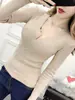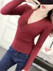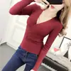 2025 Primavera e Outono Novo Feminino Estilo Coreano Ajustado Justo Sexy Camiseta Básica Decote V Transpassado Manga Longa Suéter Tricotado Top Fino