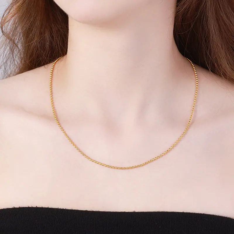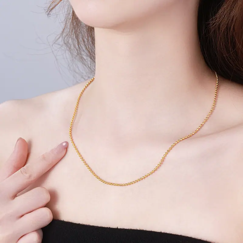 Xuping Europeu e Americano Transfronteiriço Liga de Cobre Banhado com Cor Ouro 24K, Corrente de Bolas Redondas Simples e Luxuosa, Colar Clássico da Moda Fácil de Combinar para Mulheres