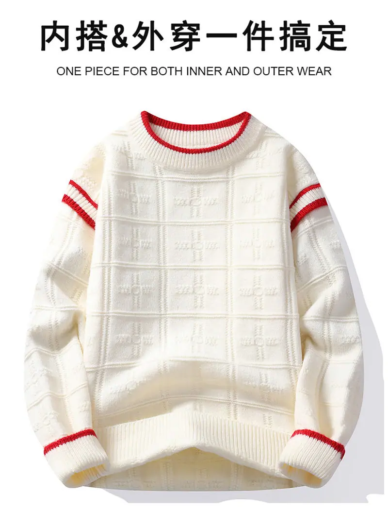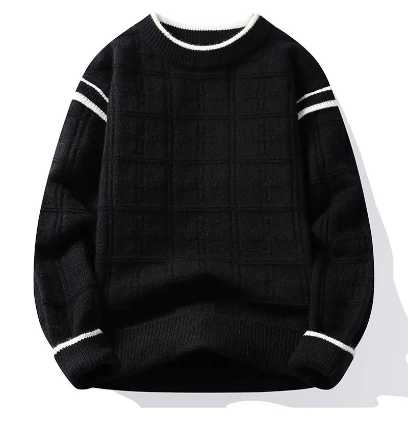 Moda de Inverno 2025 Transfronteiriça Suéter Jaqueta Gola Redonda Tricot Masculino Simples Solto Camisa Top para Sobreposição Interna