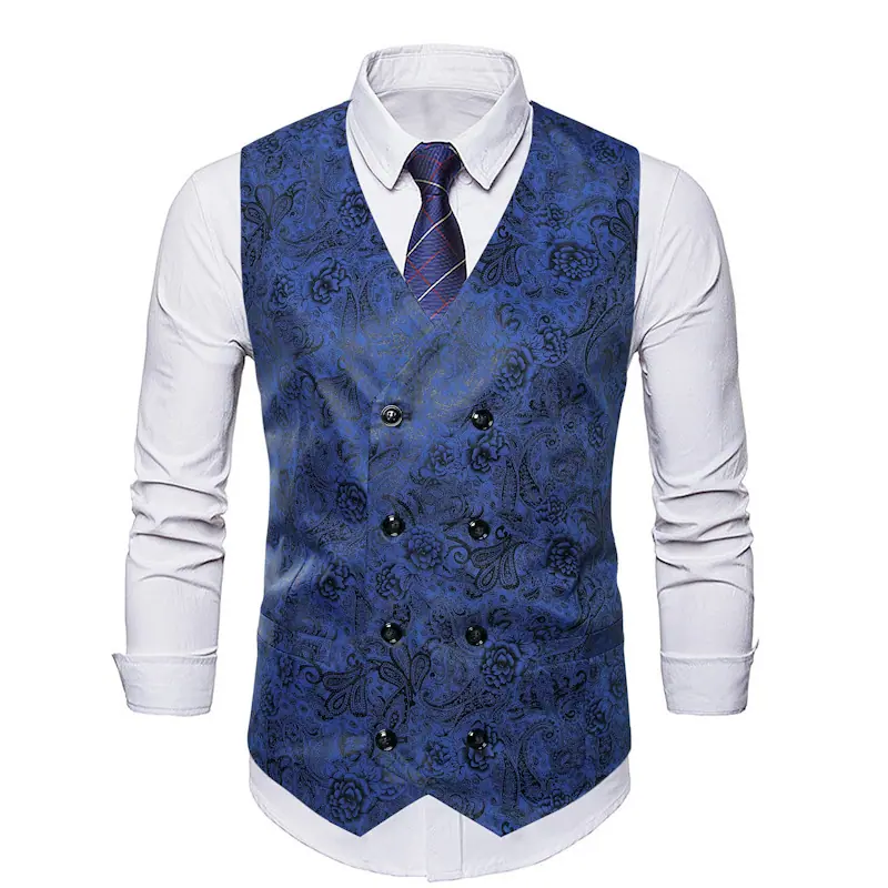 2023 comércio exterior transfronteiriço novo colete casual masculino tamanho europeu moda jacquard colete trespassado decote em V colete para homens