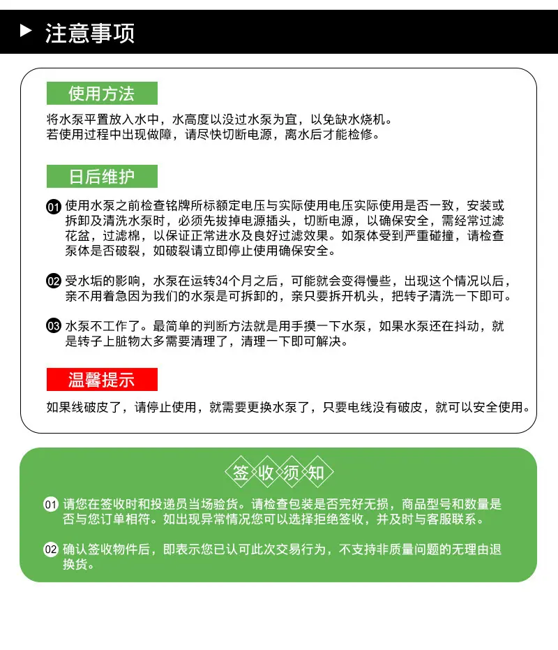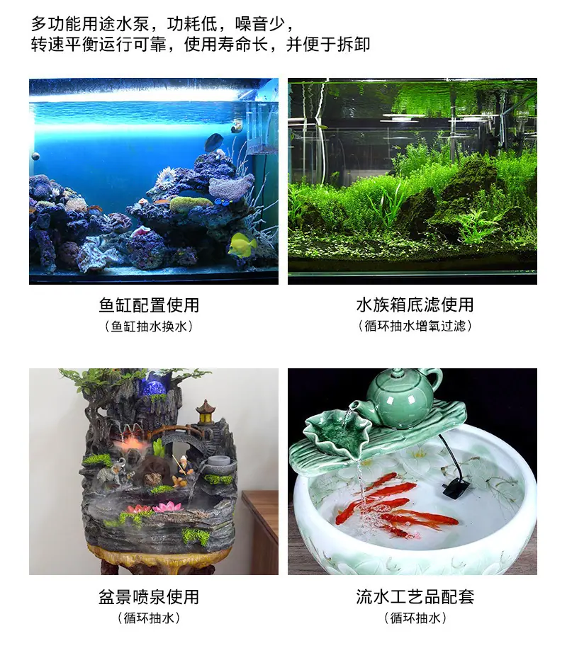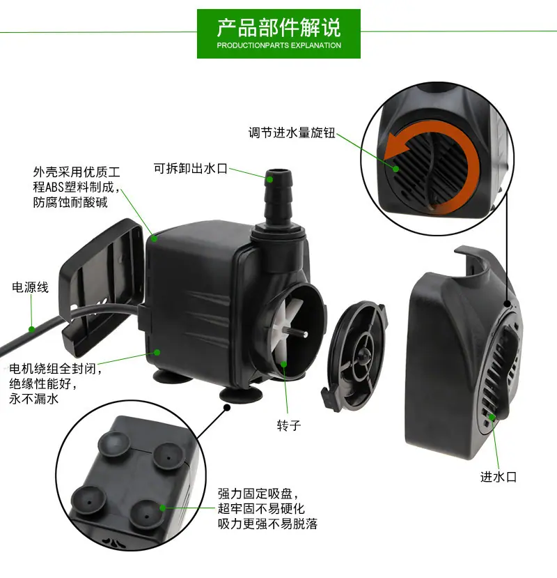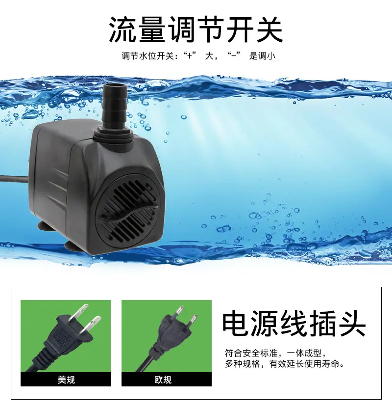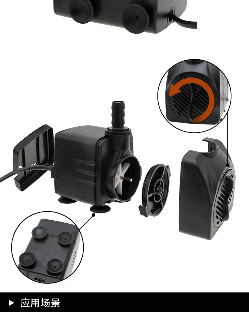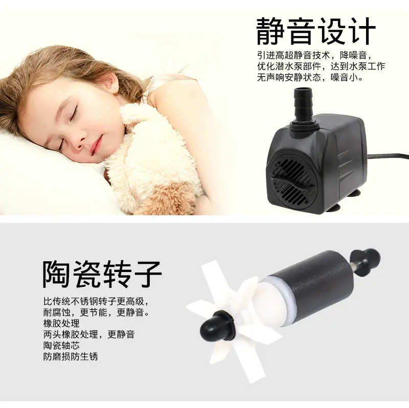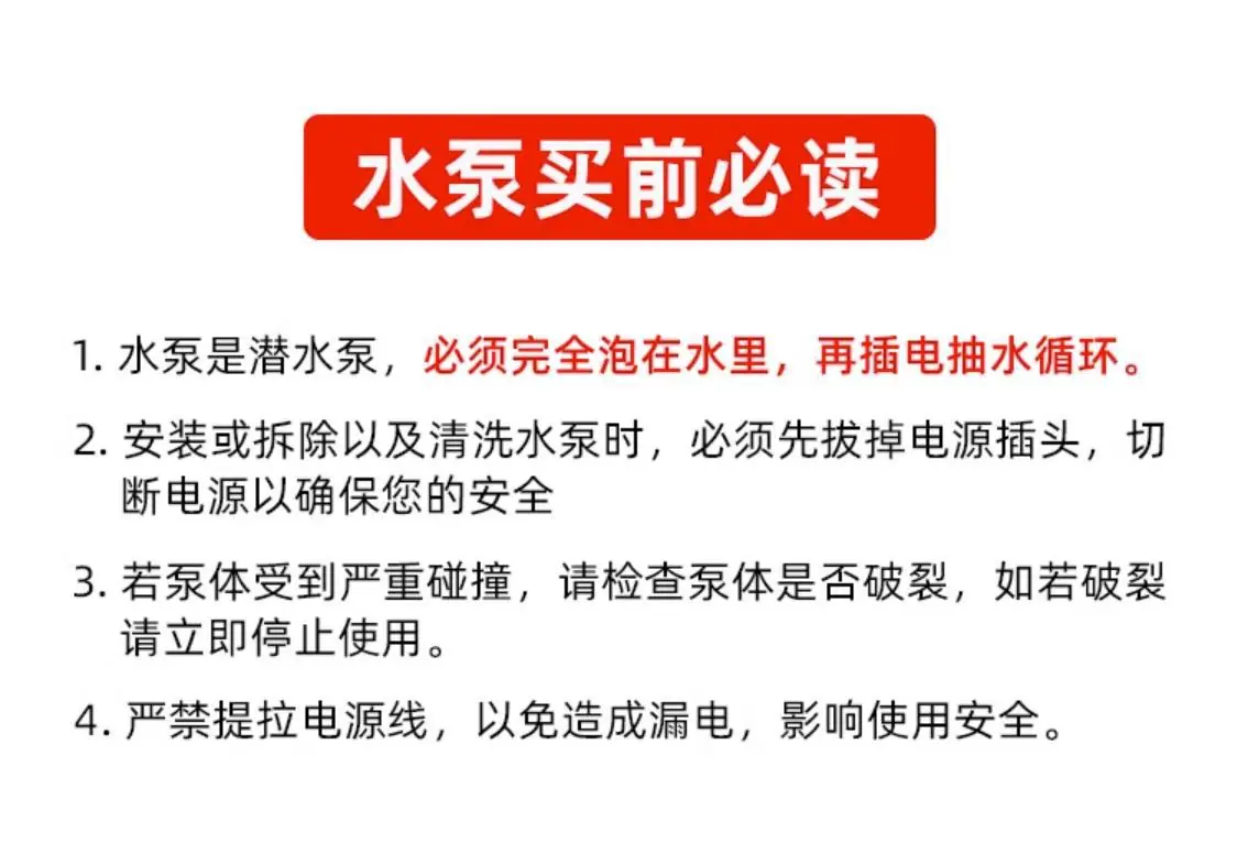 【Esta bomba submersível abaixo de 30W não possui proteção contra funcionamento a seco】【45W e acima possuem proteção contra funcionamento a seco】As bombas submersíveis devem estar completamente submersas na água durante o uso,