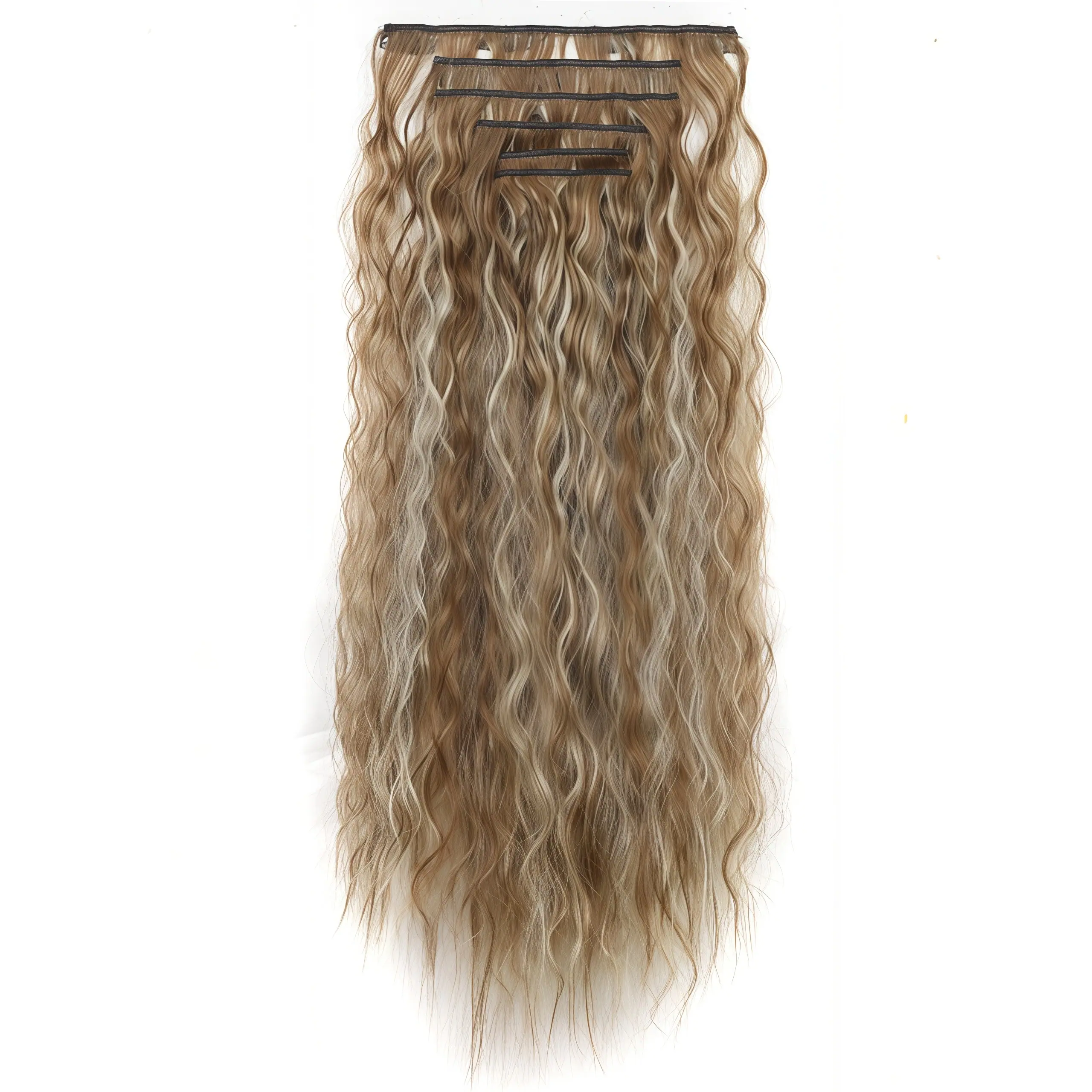 Nome do Produto: Extensão de Cabelo Longo Cacheado com Cachos de Milho de 16 Presilhas Weave Aplique Clip-in Conjunto de 6 Peças