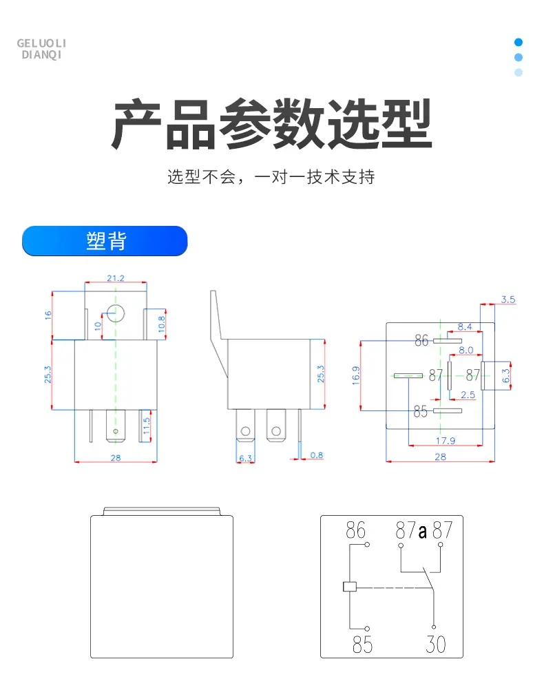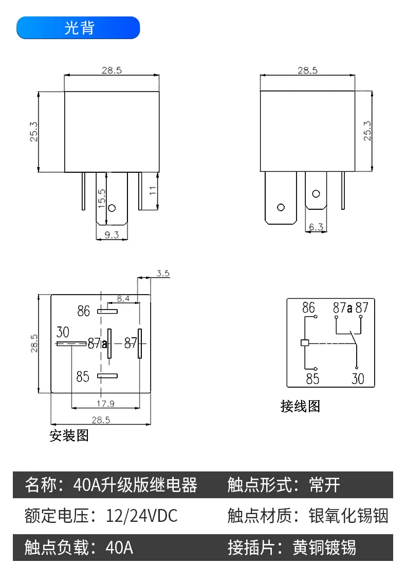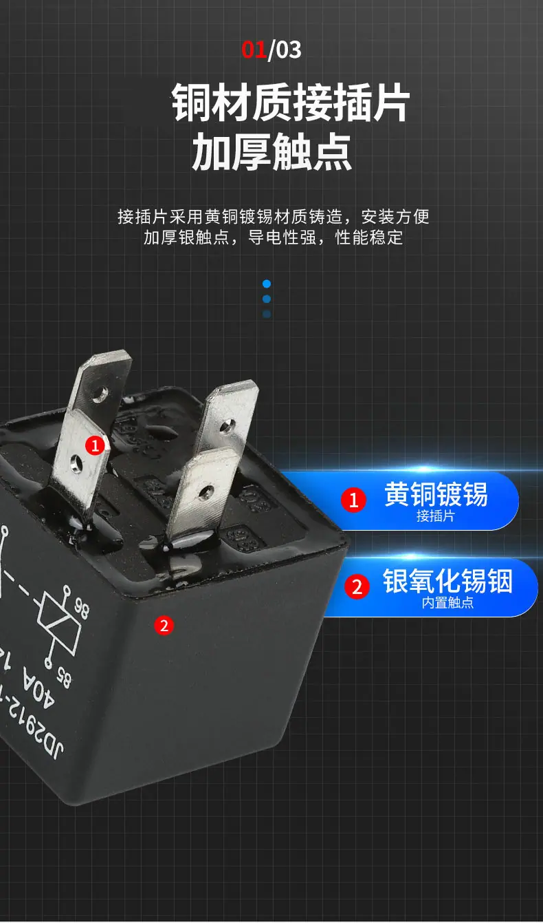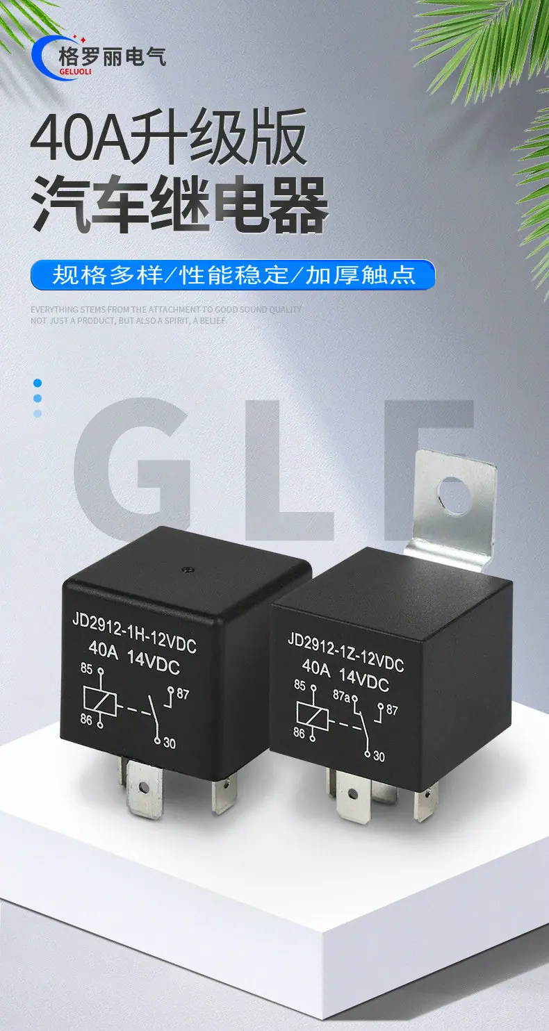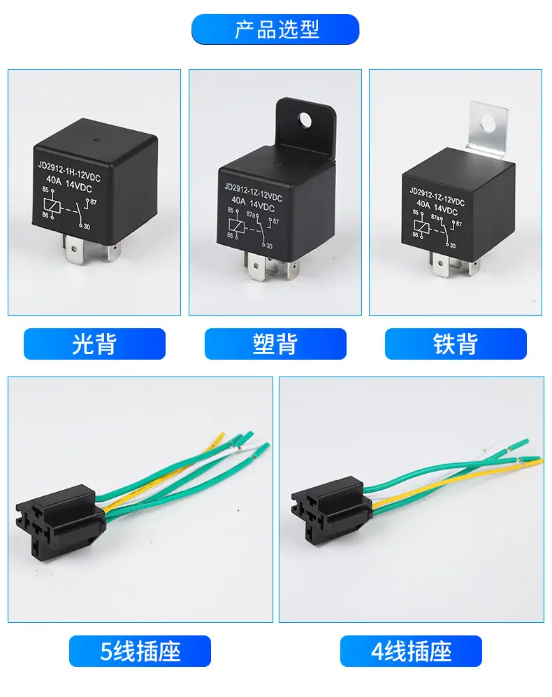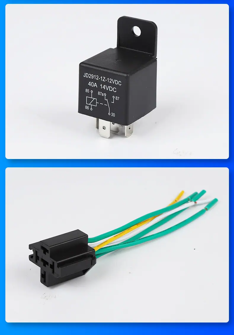 Relé automotivo JD2912, 4 pés x 5 pés, 40A, 12V/24V, modificado para carro, com traseira de plástico e ferro.