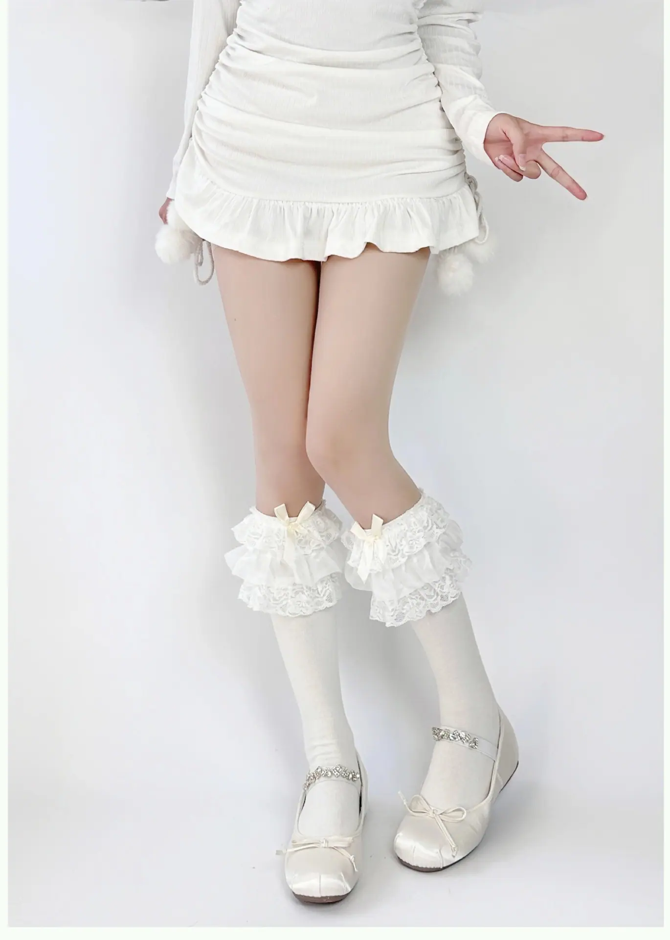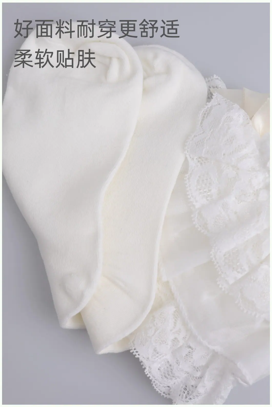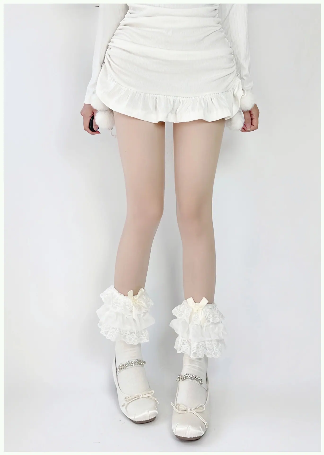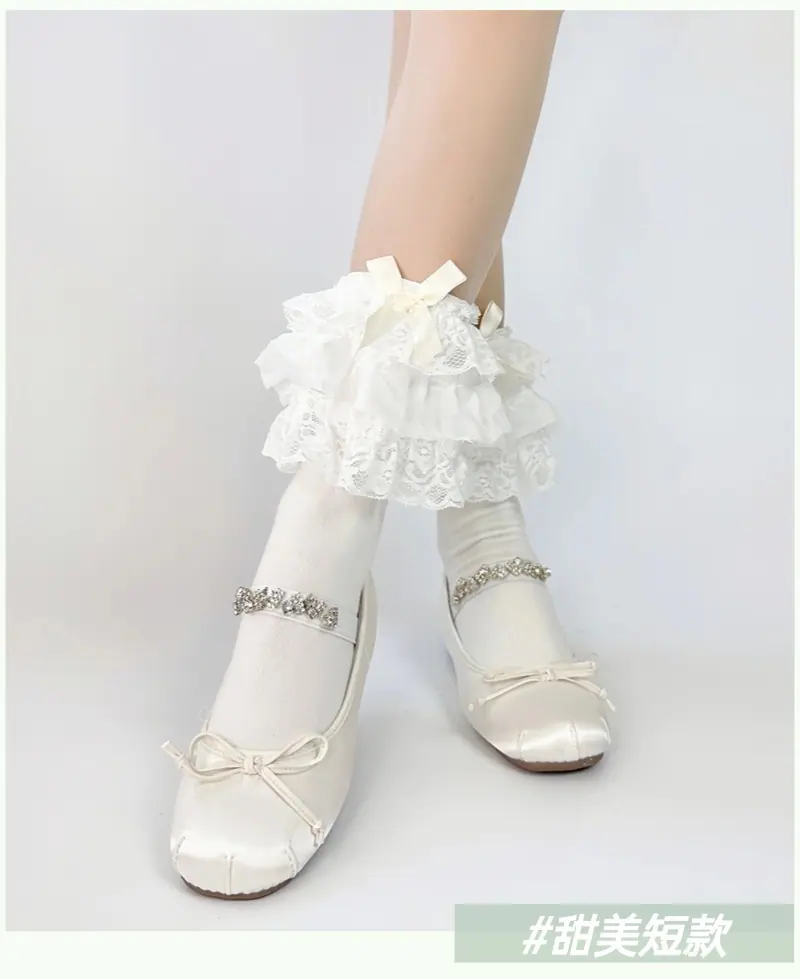 Milky White/multi-layer lace calf socks