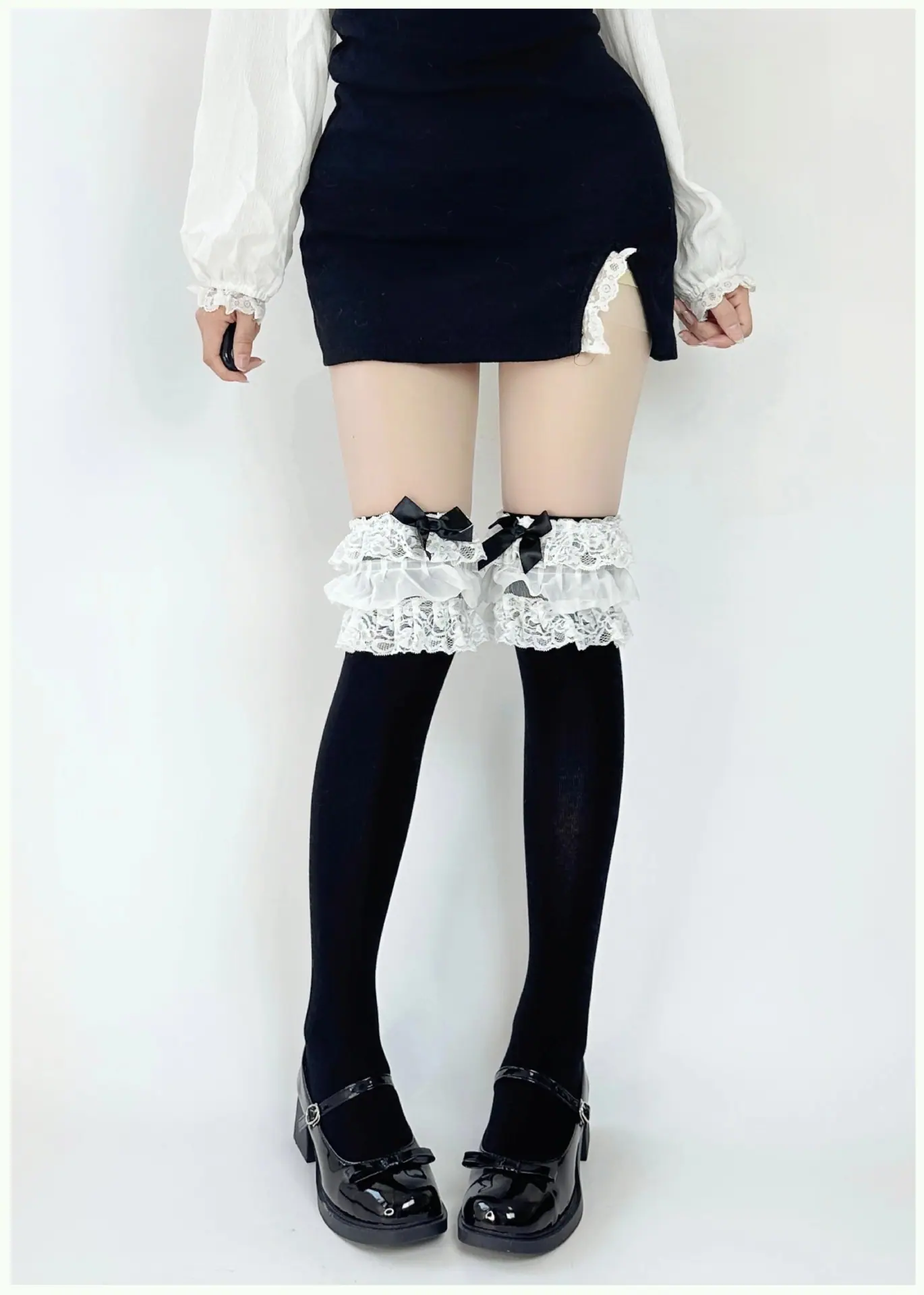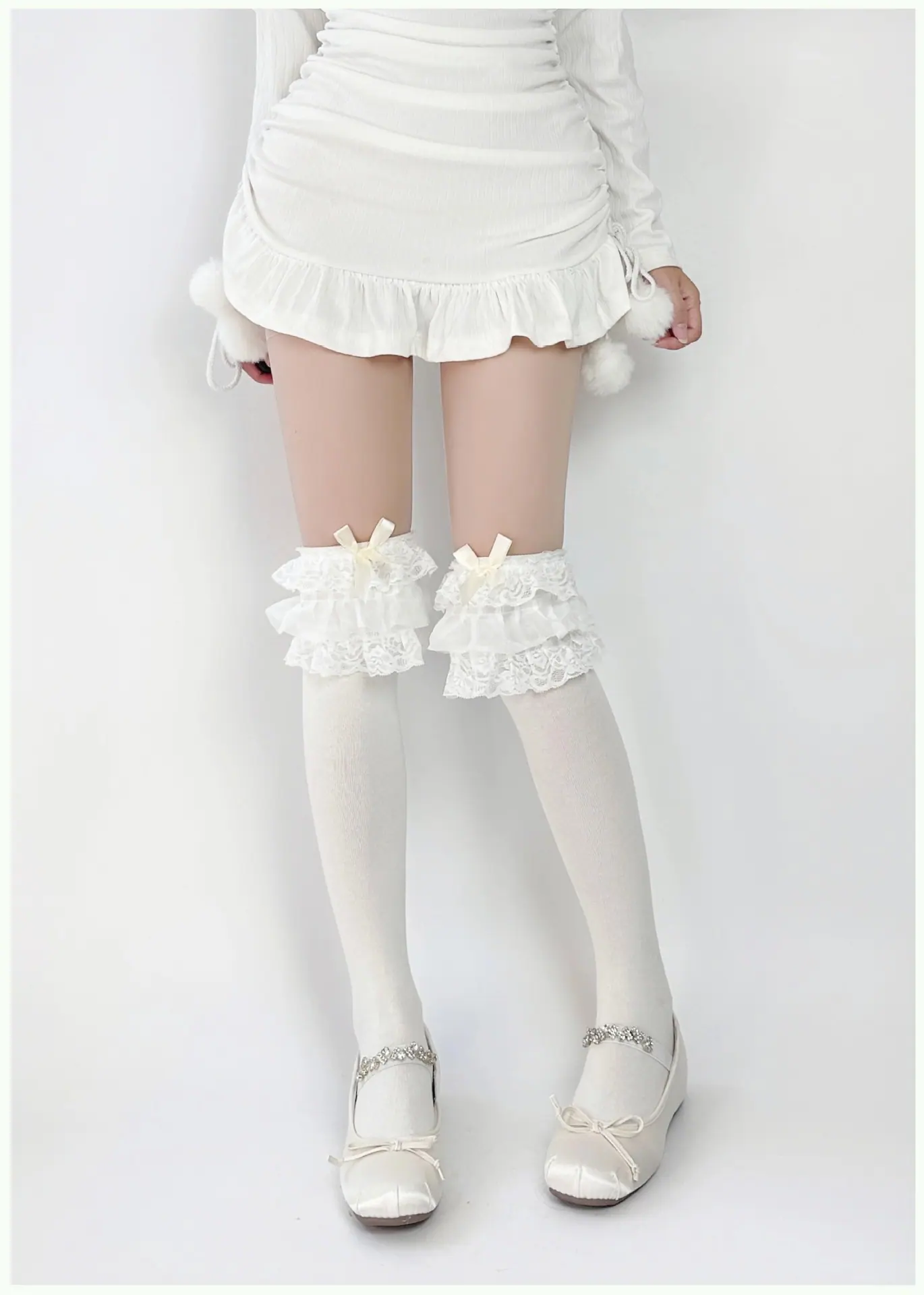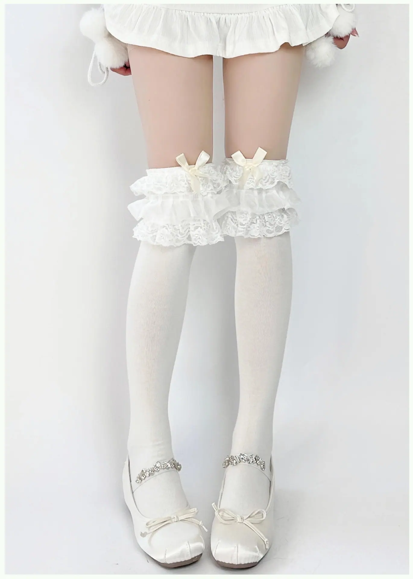 Milky White/multi-layer lace over-the-knee socks
