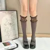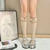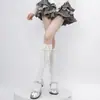 Meias Lolita Meias de Bezerro de Renda Branca Meias Jk Doce com Laço Meias Longas Lolita de Algodão Acima do Joelho