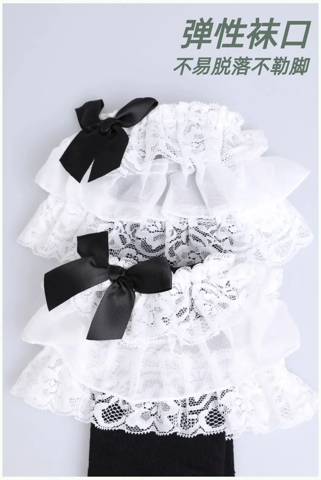 Black/multi-layered lace calf socks