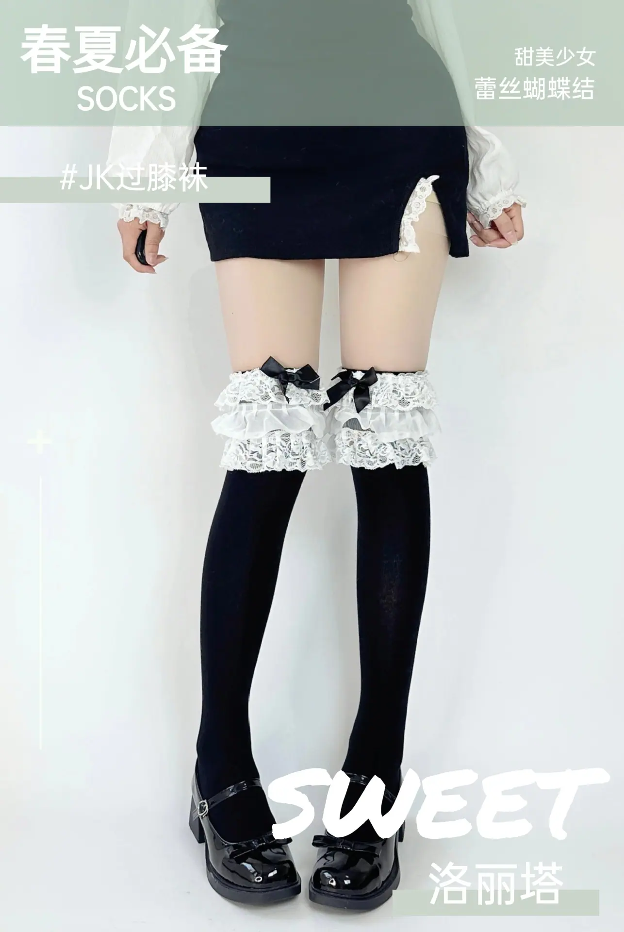 Milk white/bow socks, Cream/bow calf socks, Cream/bowknot over-the-knee socks, Black/bow over-the-knee socks, ...