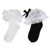 Black/lace ribbon calf socks