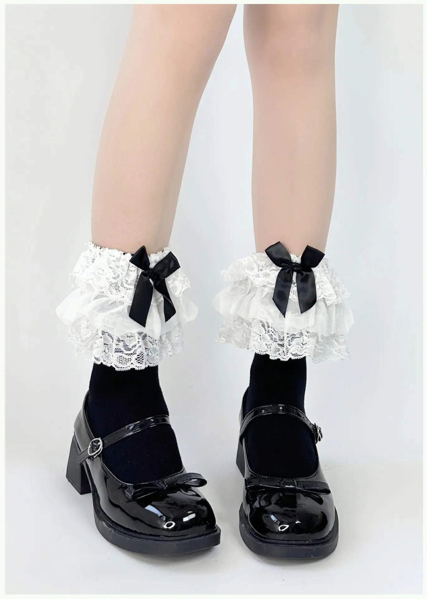 Black/lace ribbon socks