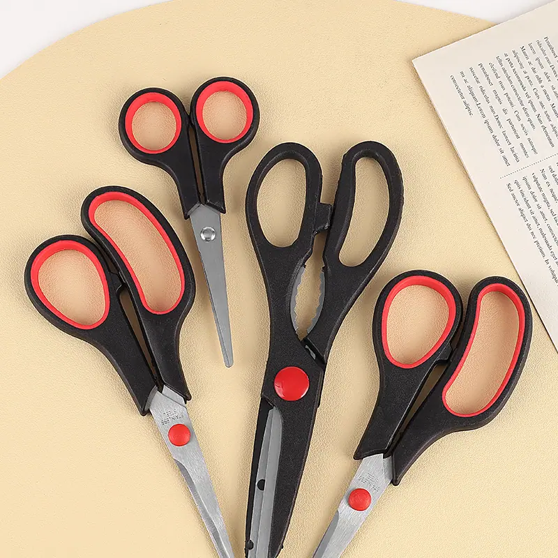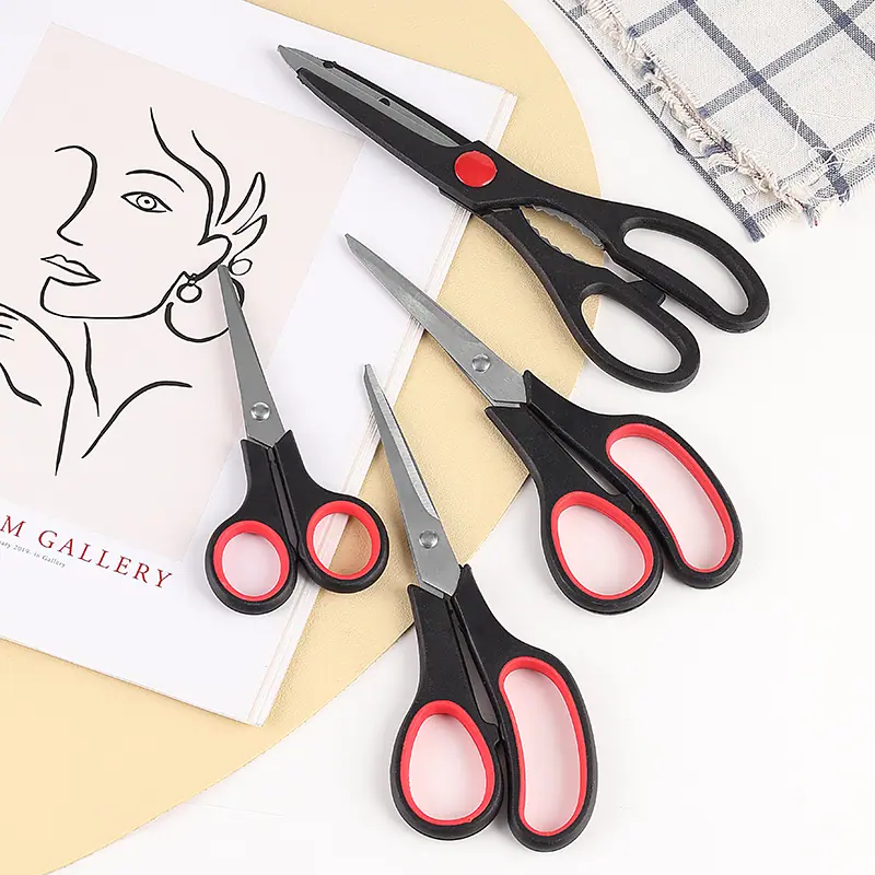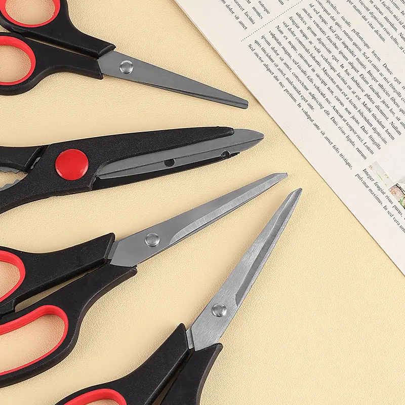 Conjunto de tesouras de cozinha (4 peças), embalado a vácuo com 180g por conjunto. Pedido mínimo: 240 conjuntos por lote, 120 conjuntos por caixa.