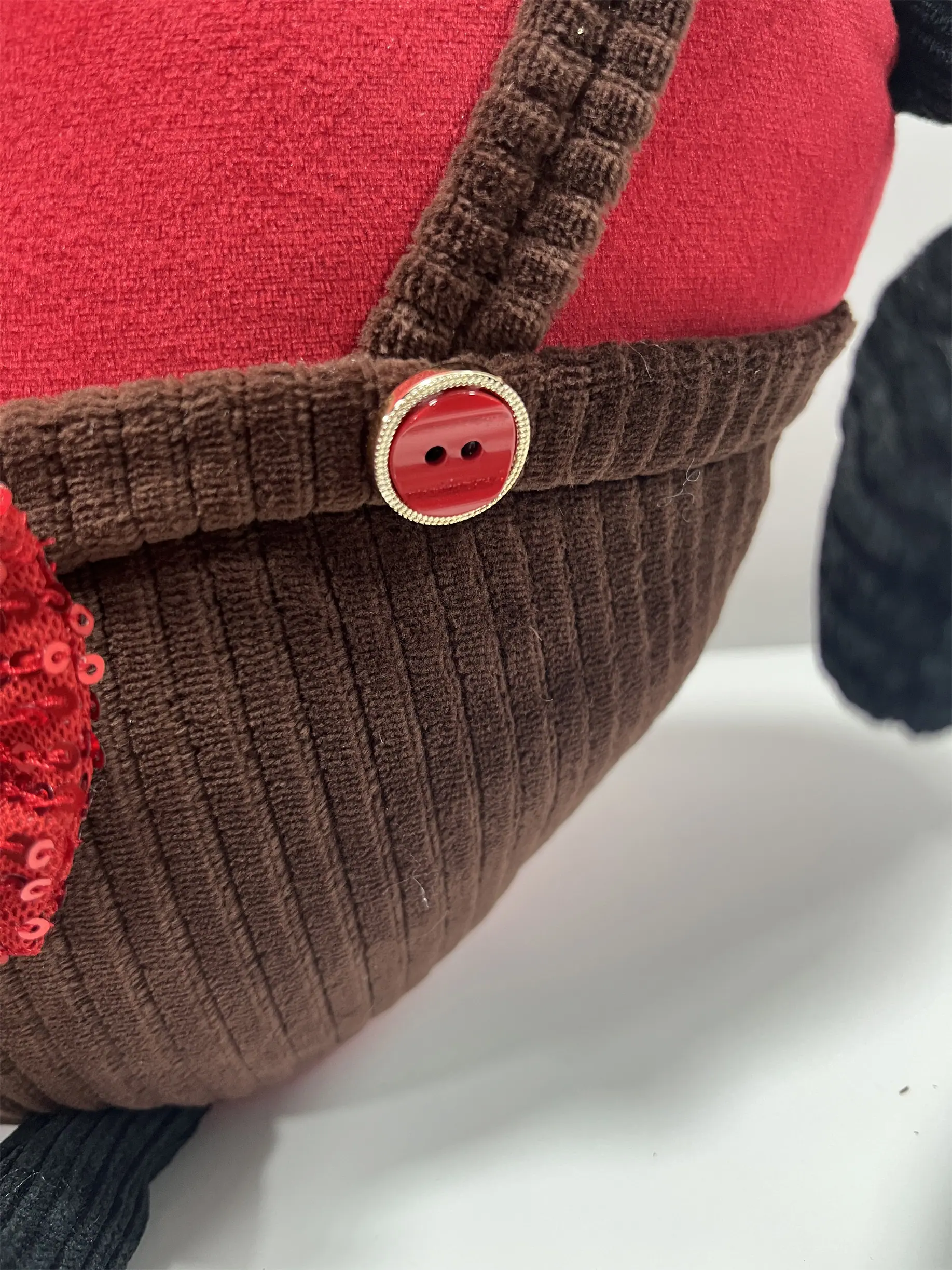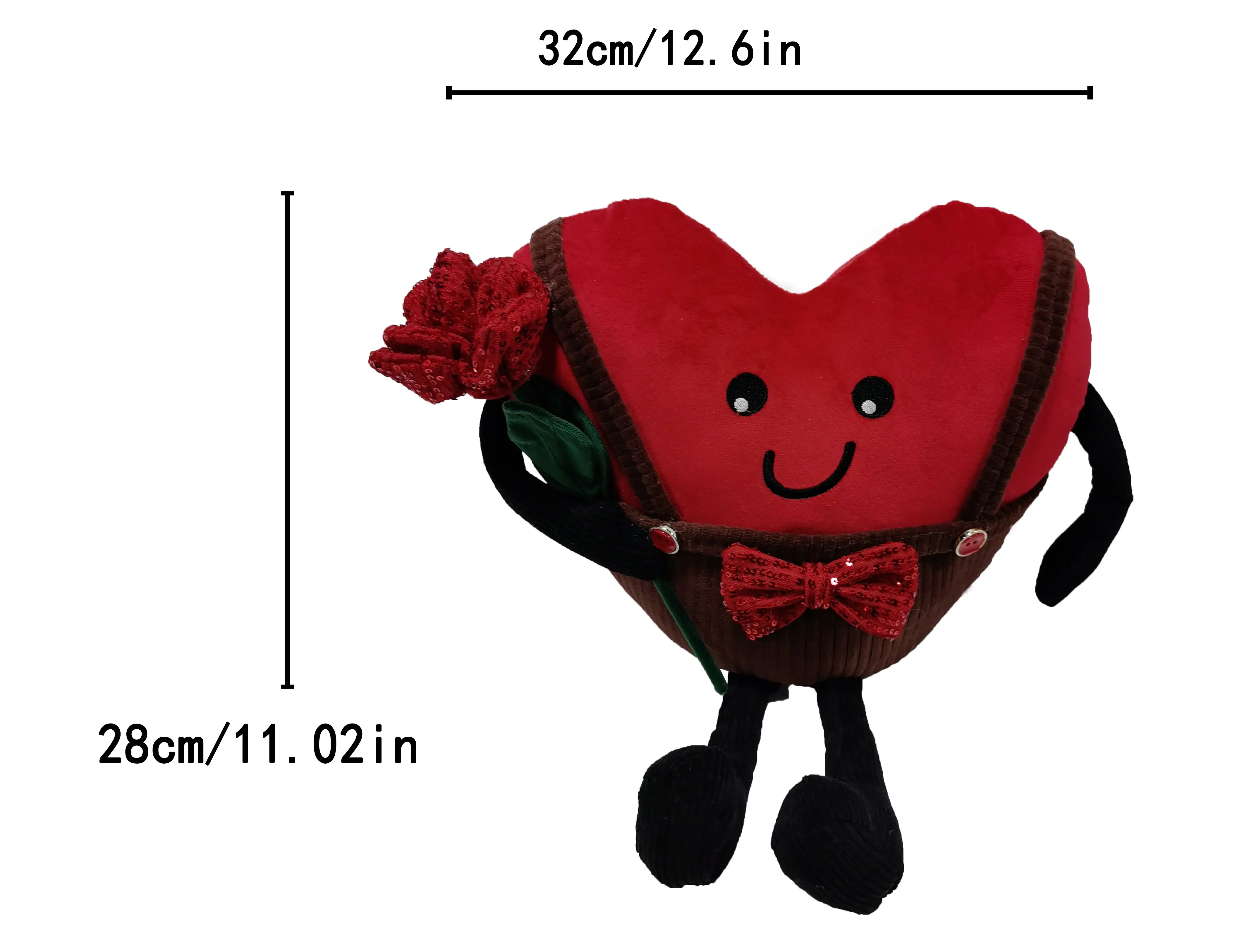 Tamanho: 32x28x10cm Cor: Vermelho preto Material: Veludo Tamanho da caixa: 48x30x30cm Qtd da caixa: 6 peças Detalhes: 1. Material de poliéster macio: Feita de poliéster premium, esta boneca de coração de pelúcia oferece um toque macio e construção durável para amor duradouro. 2. Opção de presente versátil : Ideal como presente para amantes, crianças ou amigos, esta boneca de coração fofa traz alegria em qualquer ocasião. 3. Design de Padrão de Coração: O design com padrão de coração torna esta boneca uma adição encantadora para qualquer cômodo, perfeita para decoração de Dia dos Namorados.