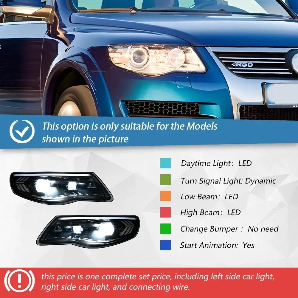 Atualize seu Volkswagen Touareg 7L 2007-2010 com faróis LED dianteiros de alto desempenho. Projetado para ajuste perfeito e instalação fácil plug-and-play. Não são necessárias ferramentas extras.