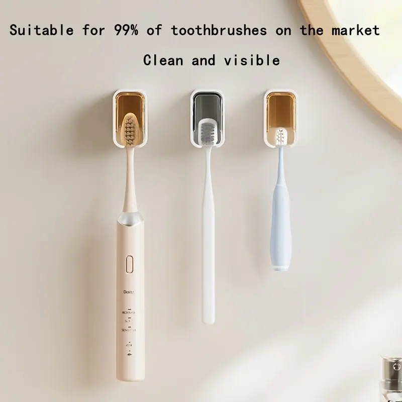 Caixa de Armazenamento de Escovas de Dente Montada na Parede, Organizador de Banheiro com Suporte em Forma de U para Escovas de Dente Elétricas e Comuns, Armazenamento de Banheiro, Acessório de Banheiro