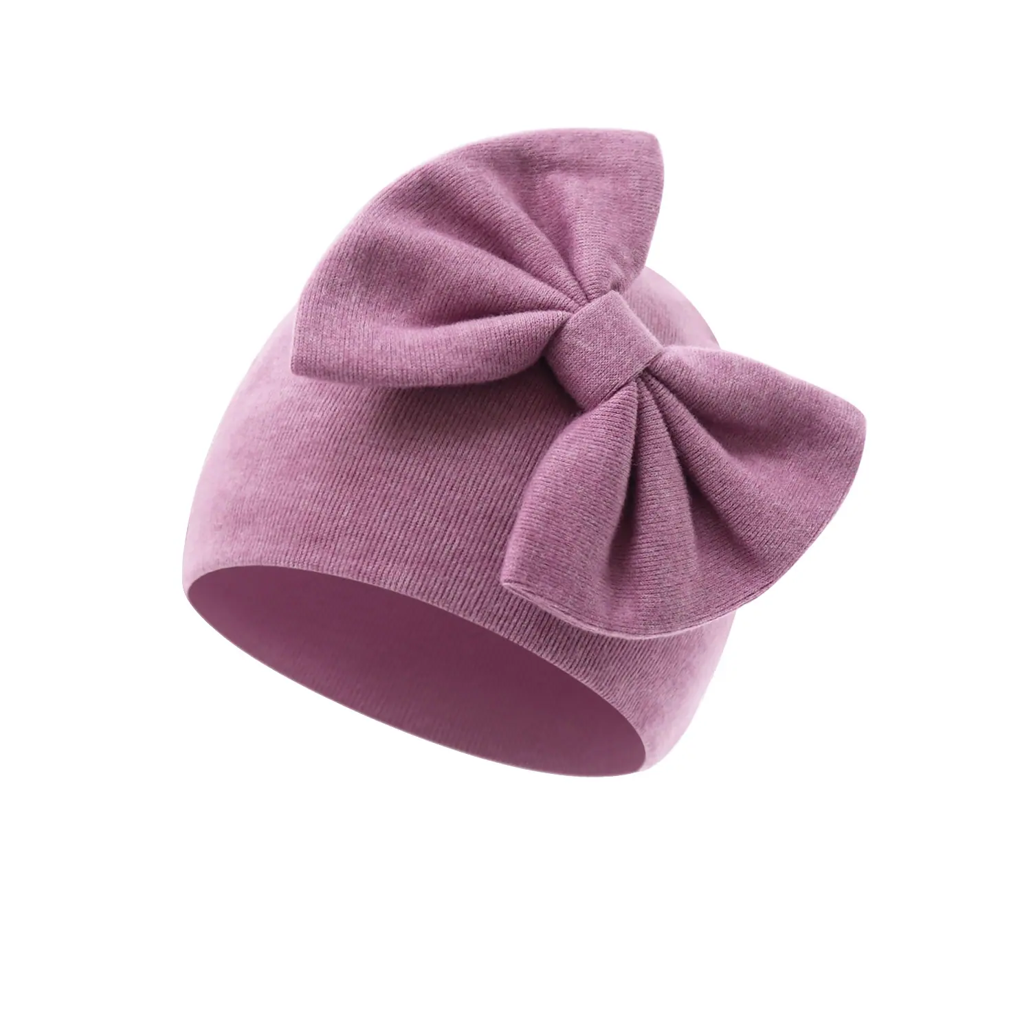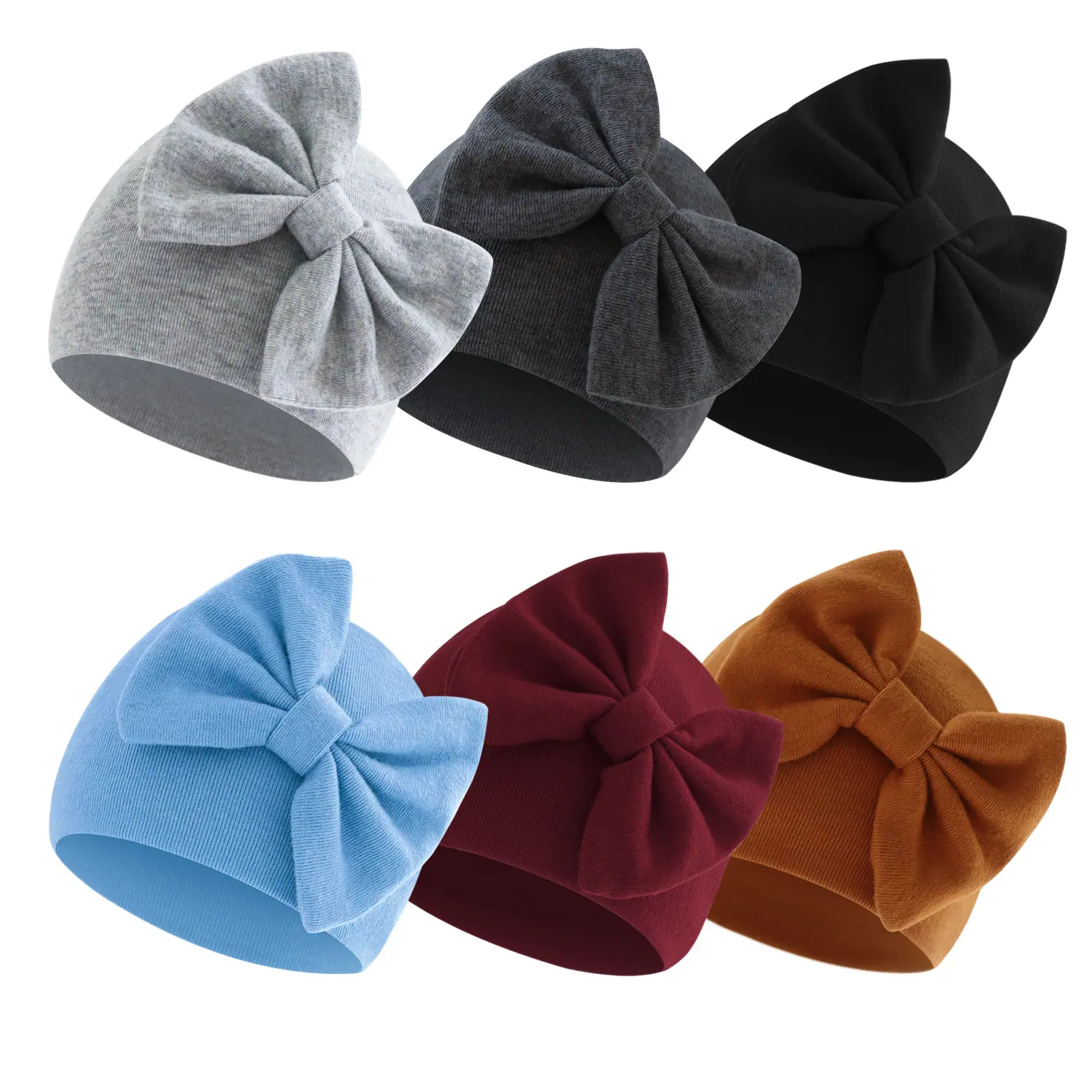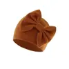 Touca de bebê com pompom Amazon outono e inverno, touca de pulôver com laço para bebê, cor sólida, chapéu de recém-nascido 0-Junho