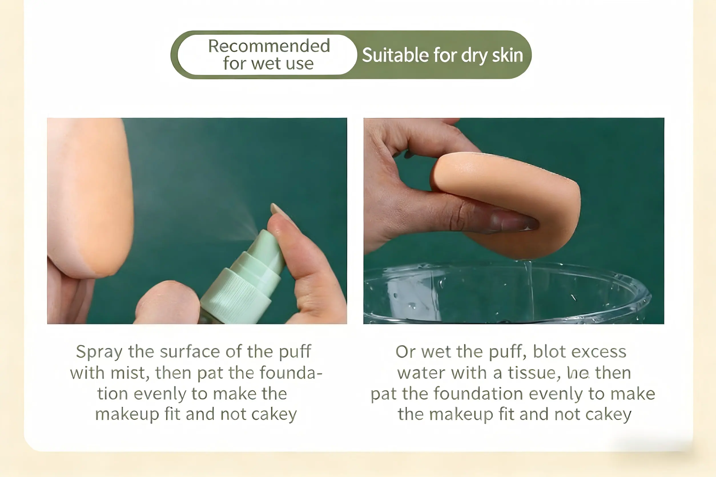 Adequado para base líquida, base cushion, corretivo e produtos em creme. Ajuda a obter um acabamento de maquiagem uniforme e natural.