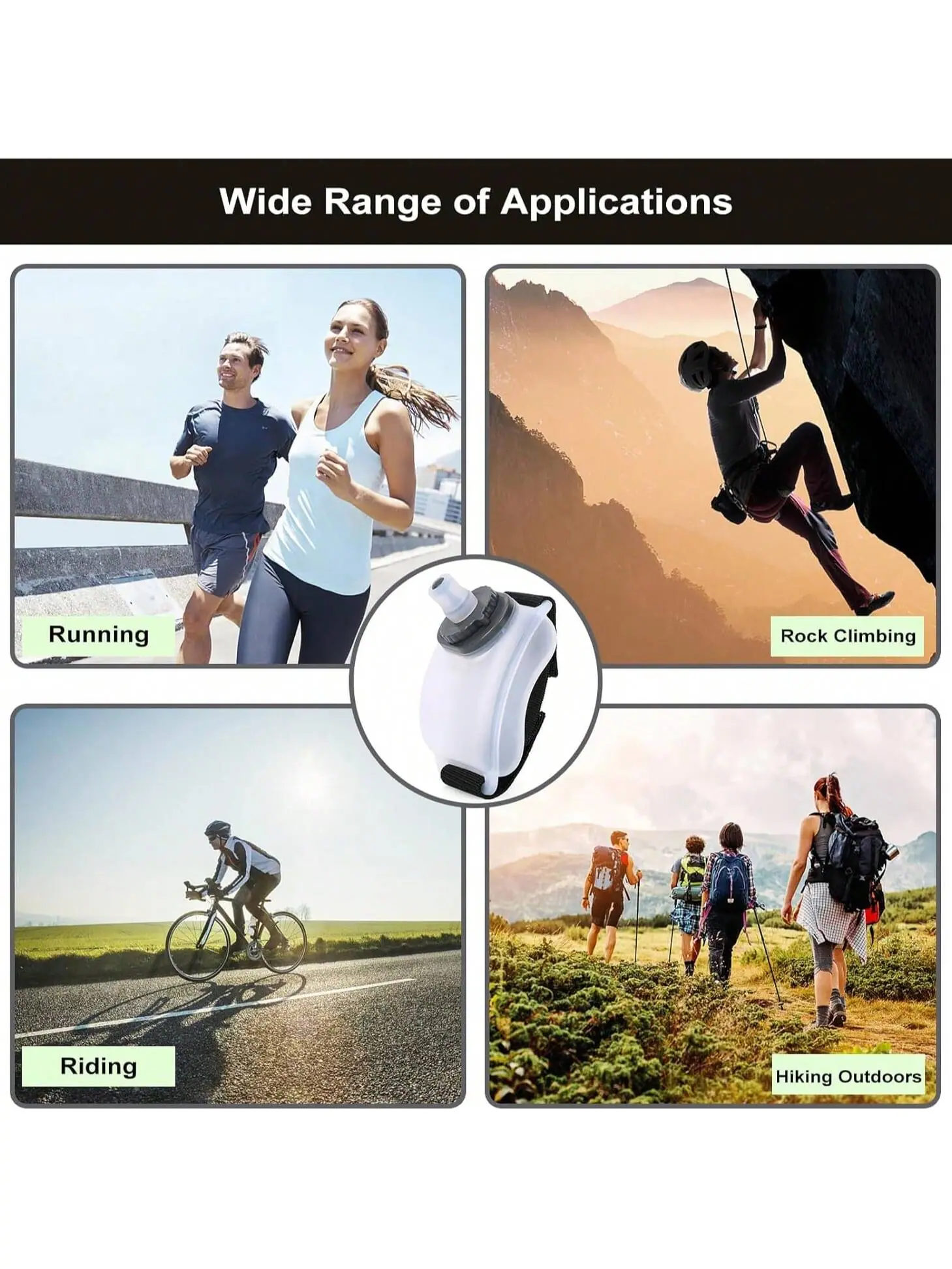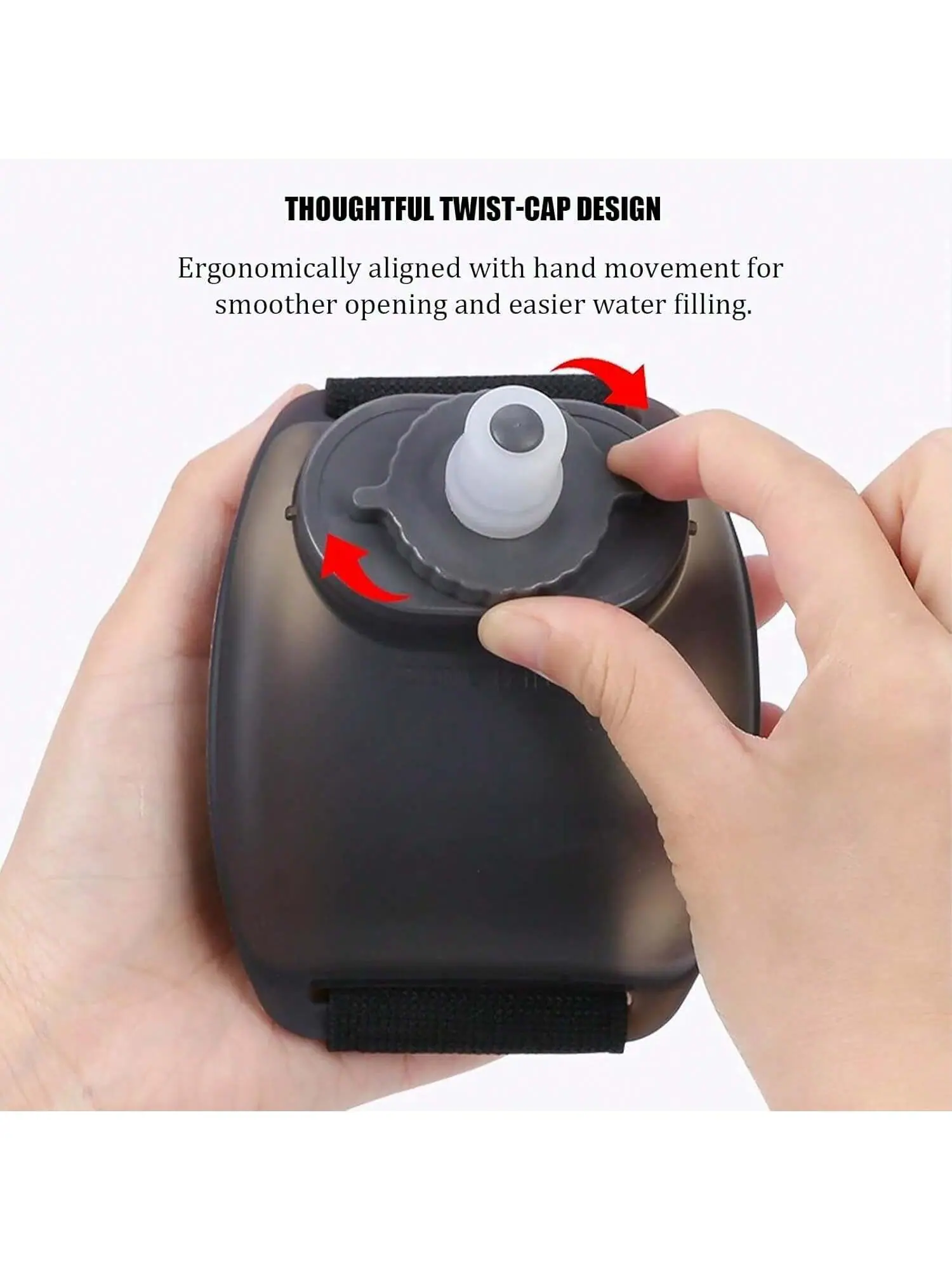 Design Prático: Nossa garrafa de água de pulso projetada com tiras de mão de velcro, que podem ser ajustadas para caber em suas mãos, sem necessidade de segurá-la enquanto corre, caminha, escala, deixando suas mãos livres.. E também pode ser usada como uma garrafa de água de mão, Conveniente para beber em movimento.