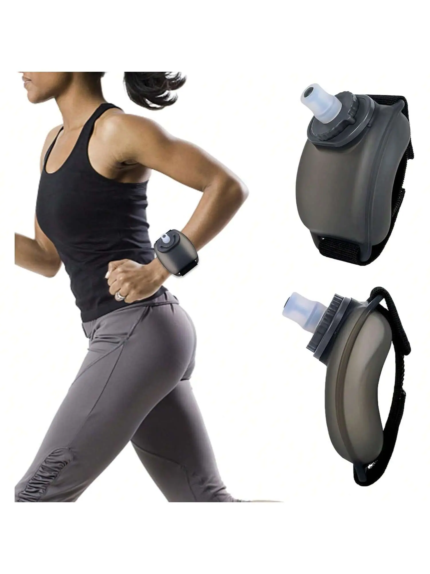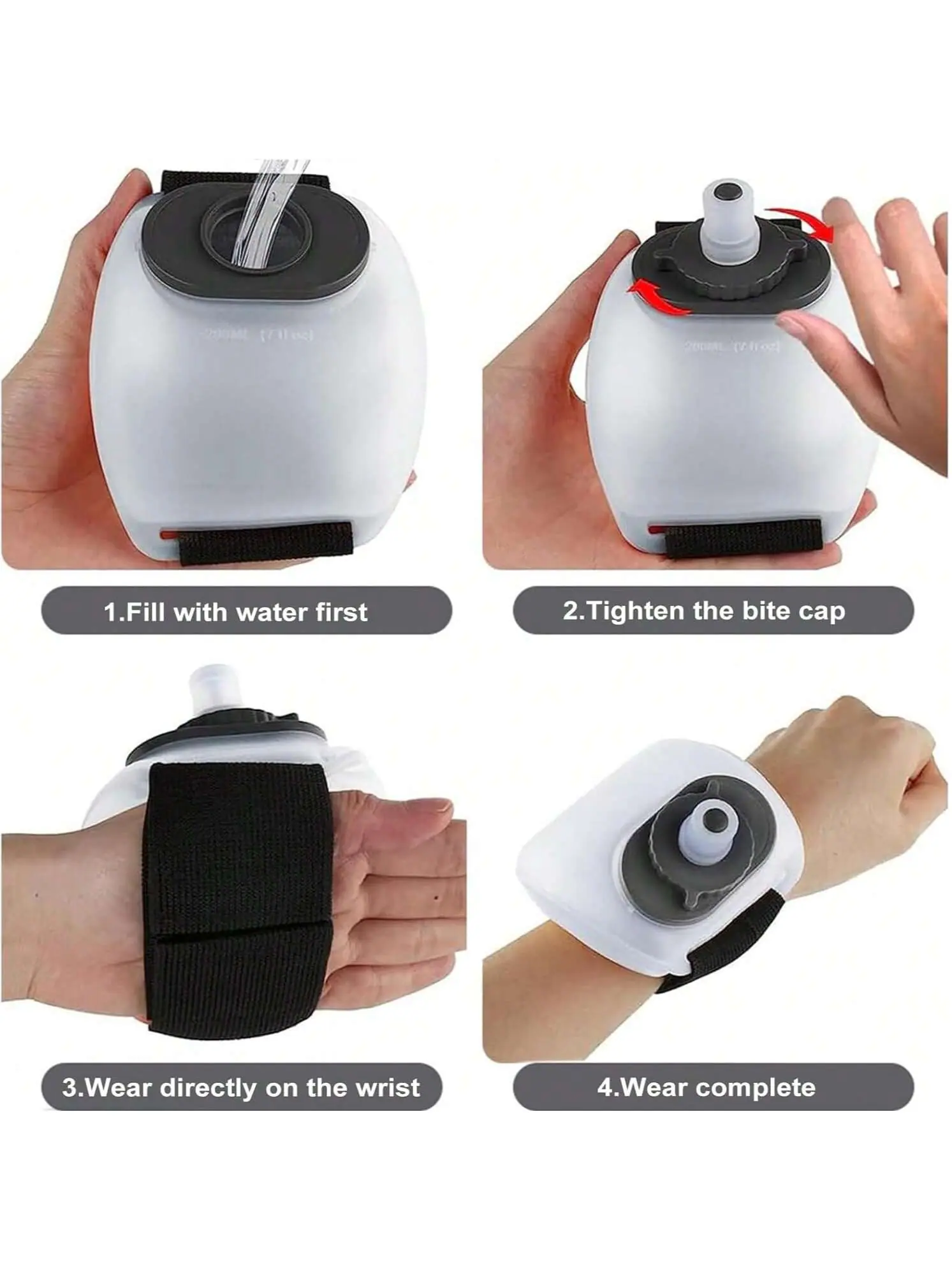 Alças de mão ajustáveis: A pulseira do frasco tem 7,09 polegadas de comprimento, é elástica com Velcro, serve para a maioria das mãos e é confortável de usar no pulso.. A garrafa de água de silicone macio é fácil de limpar.