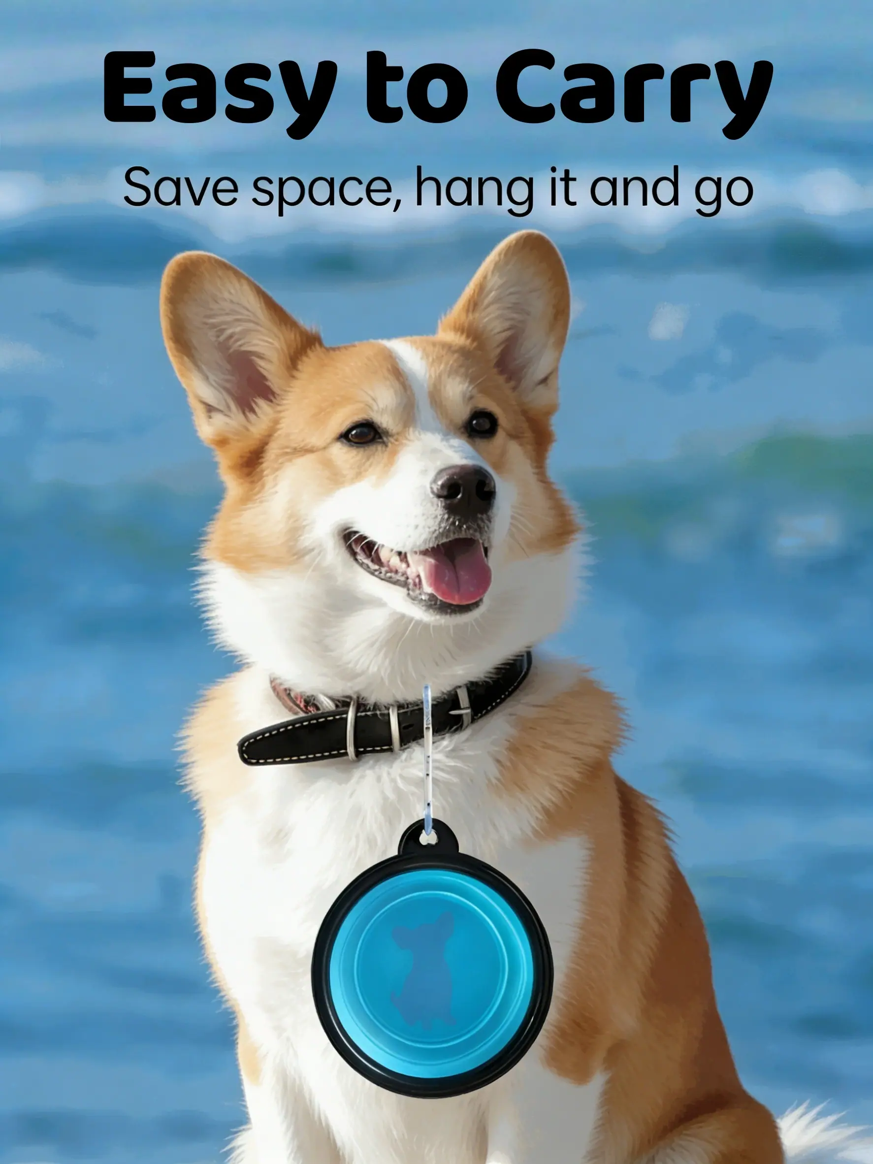 Dobra-se para economizar espaço e prende facilmente em coleiras, mochilas ou passantes de cinto—ideal para passeios, caminhadas, acampamentos e viagens.