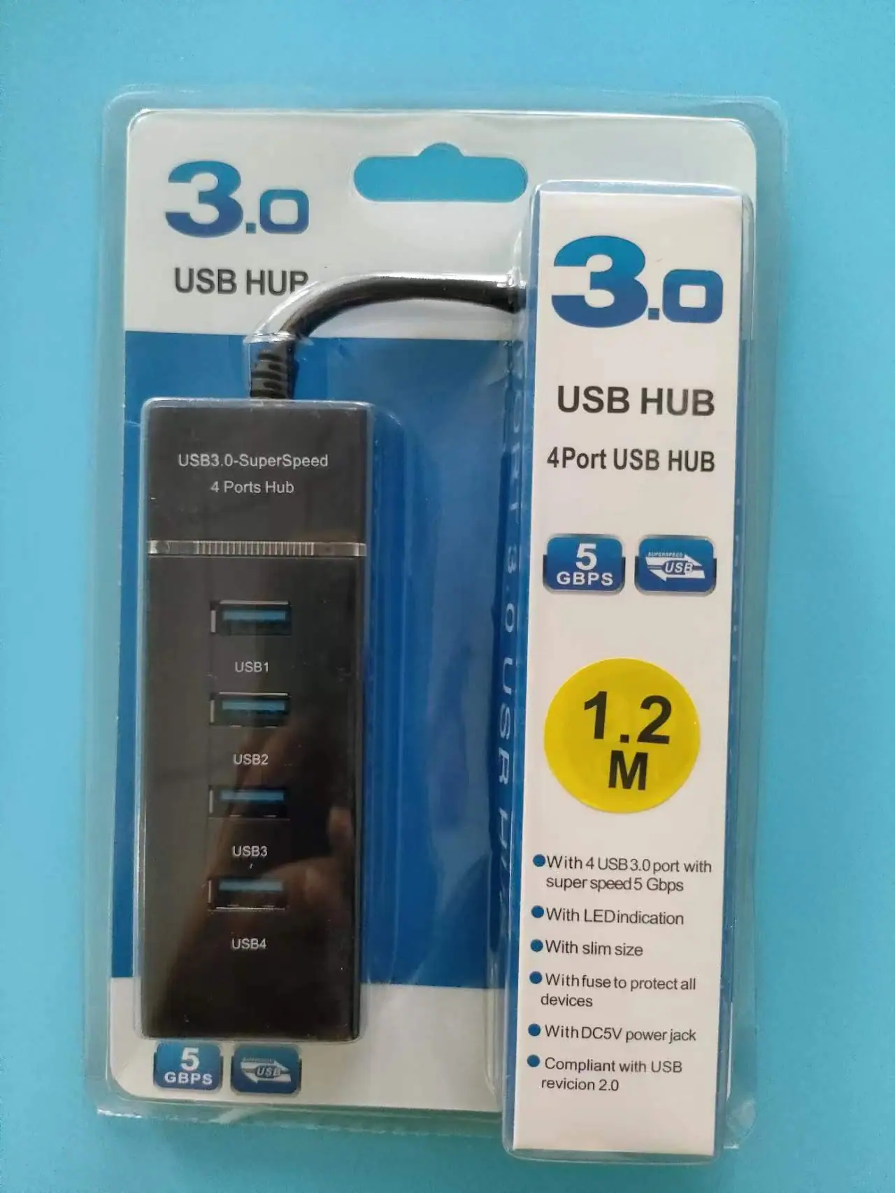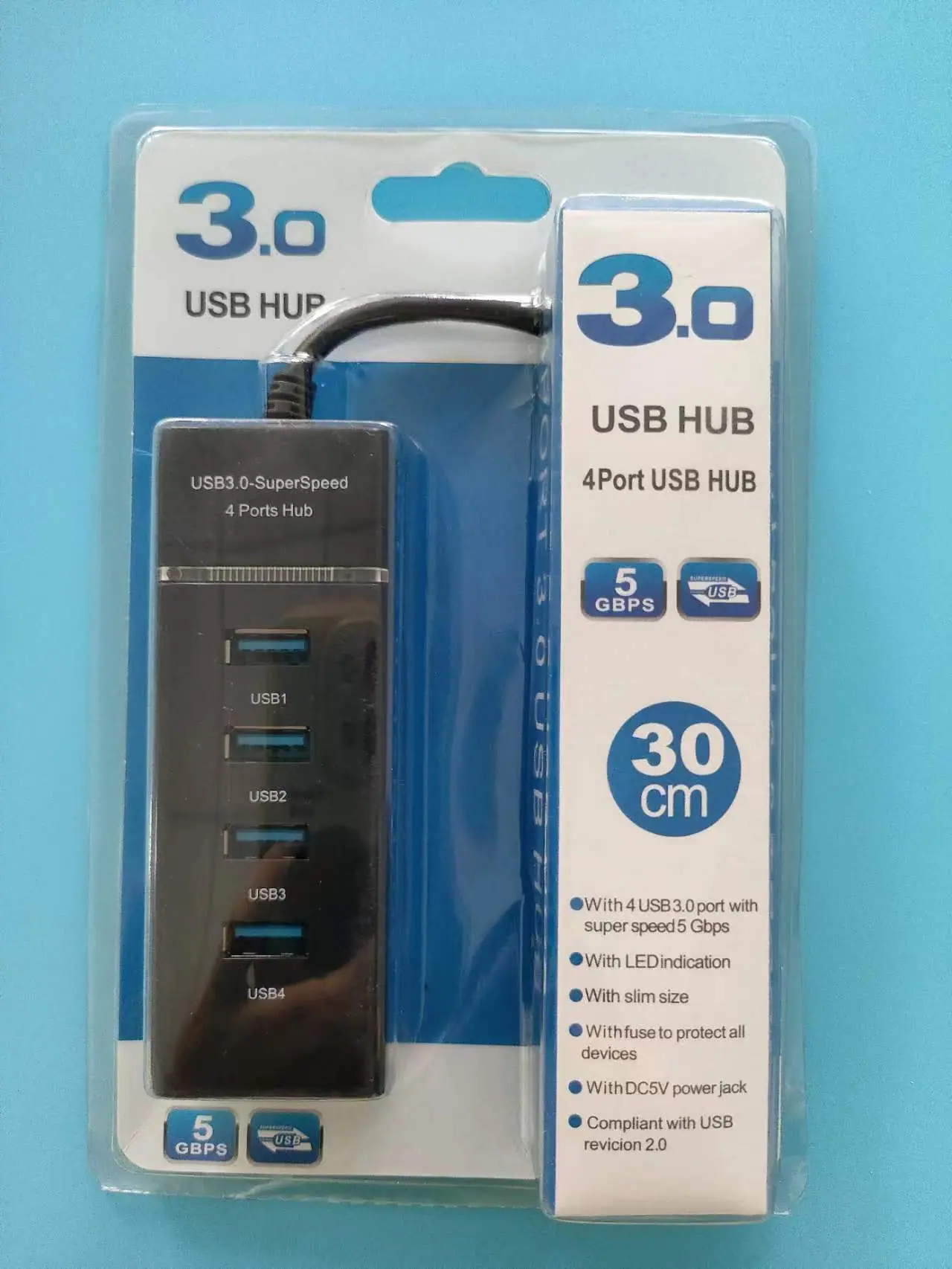 Hub USB 3.0 de 4 Portas Hub de 4 Portas 3.0 Divisor Um para Quatro Tira de LED 3.0