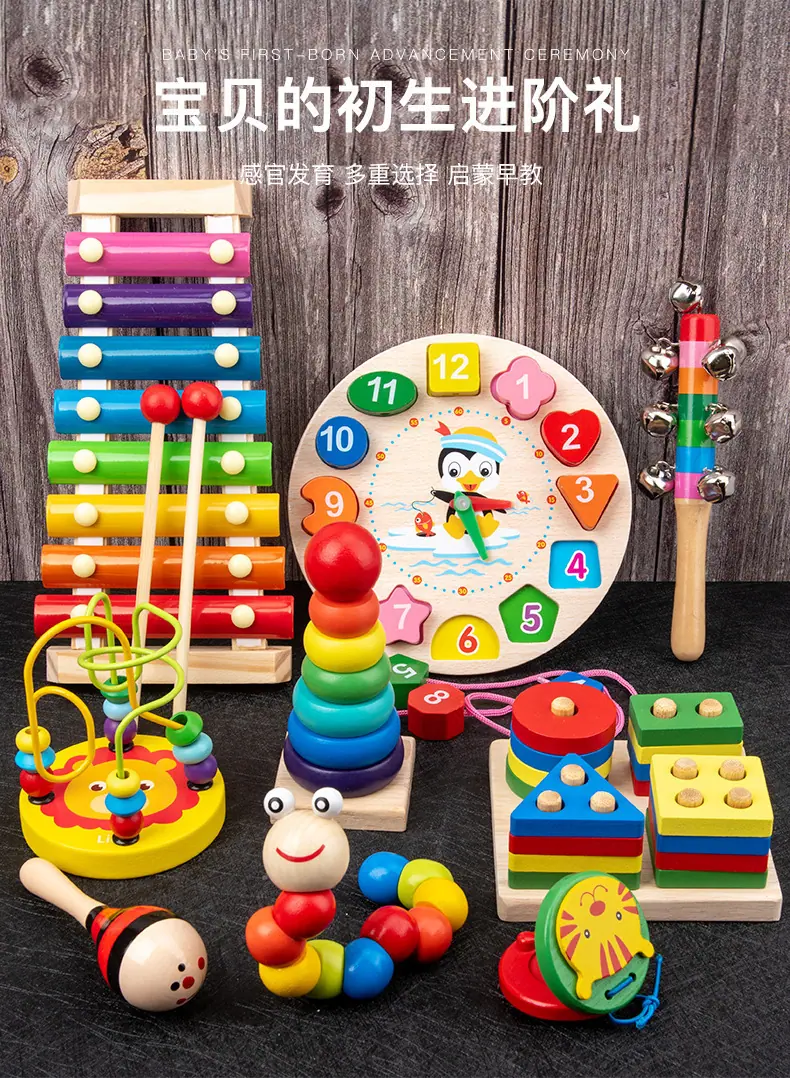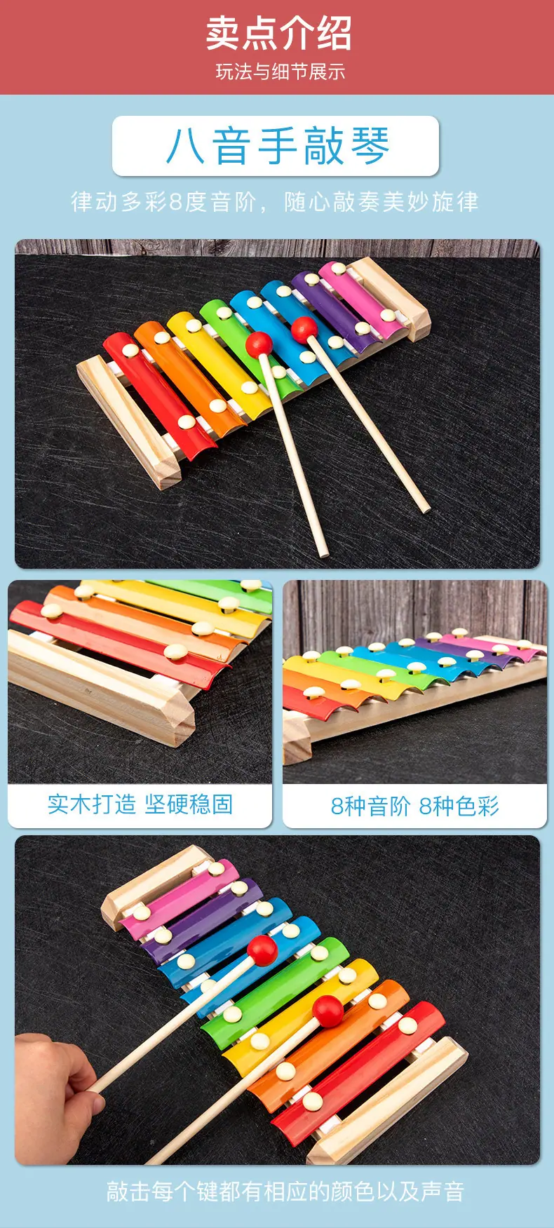 Instrumentos de Percussão Blocos de Construção para Inteligência de Bebês e Crianças Pequenas Iluminação Musical Percussão Manual de Oito Tons de Madeira Brinquedos Musicais Educacionais em Estoque