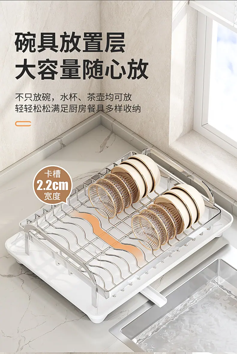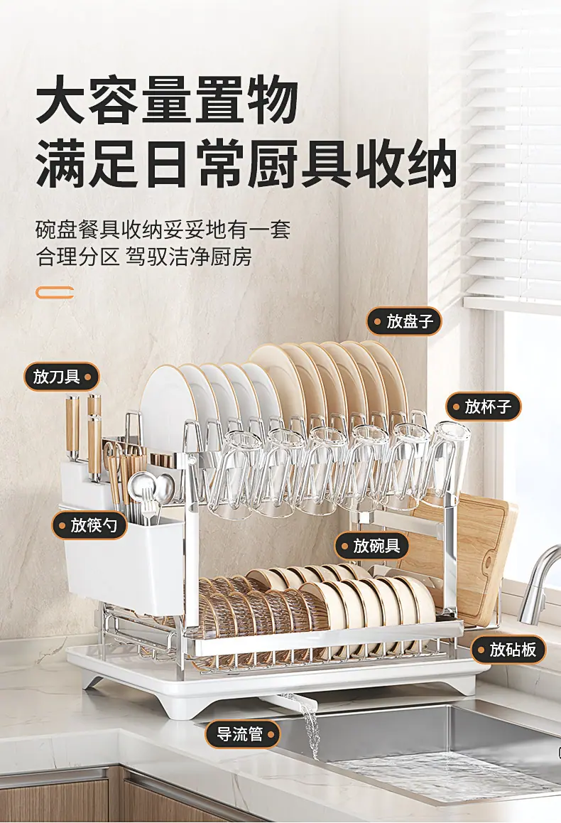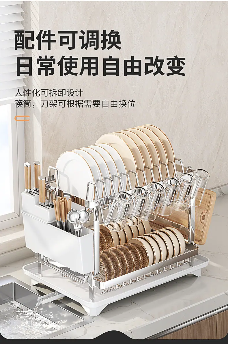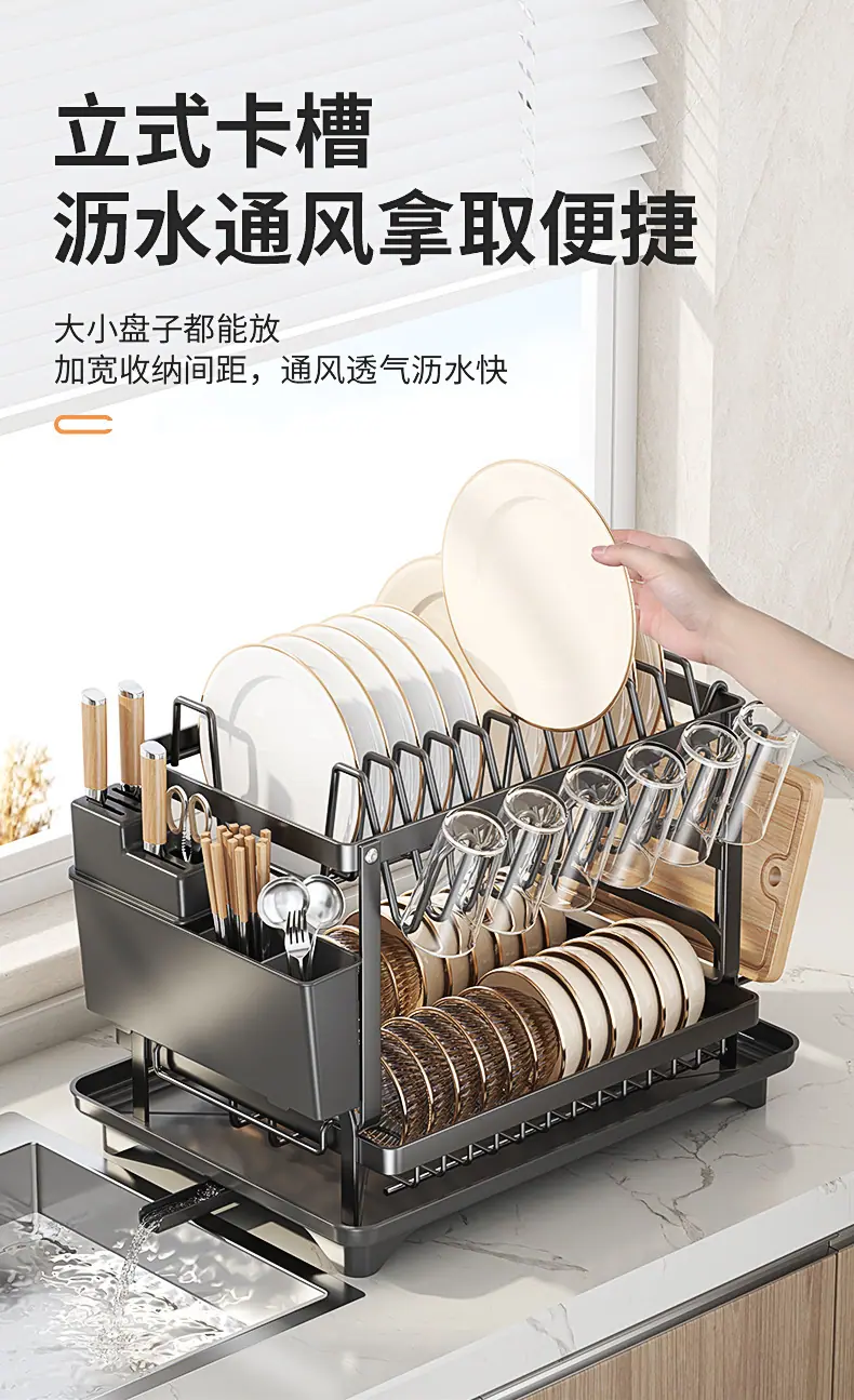 Prateleira de Armazenamento de Cozinha para Comércio Exterior Prateleira Dupla para Pratos Armazenamento de Tigelas e Pratos Prateleira Drenante Organizador de Louças e Copos Doméstico