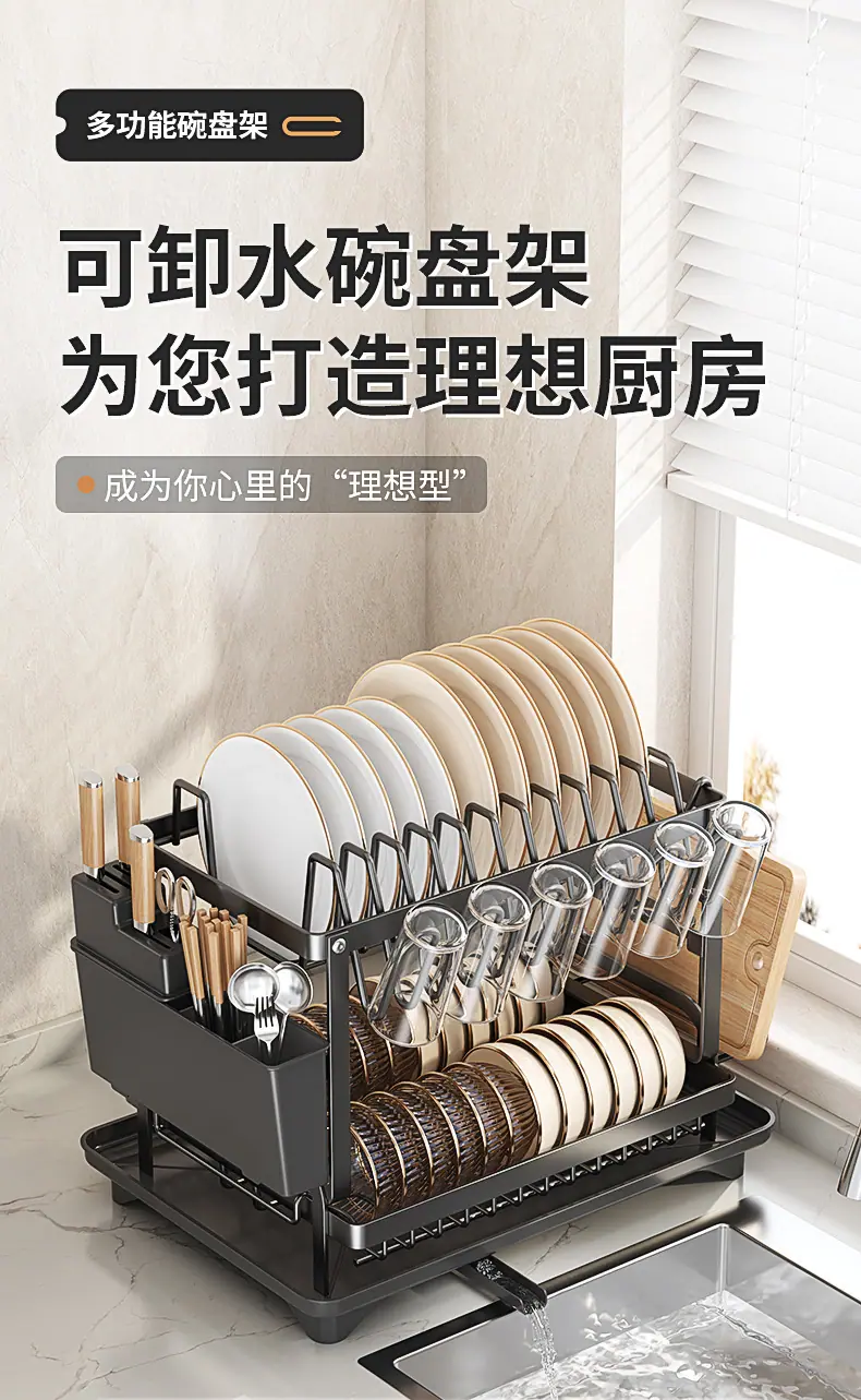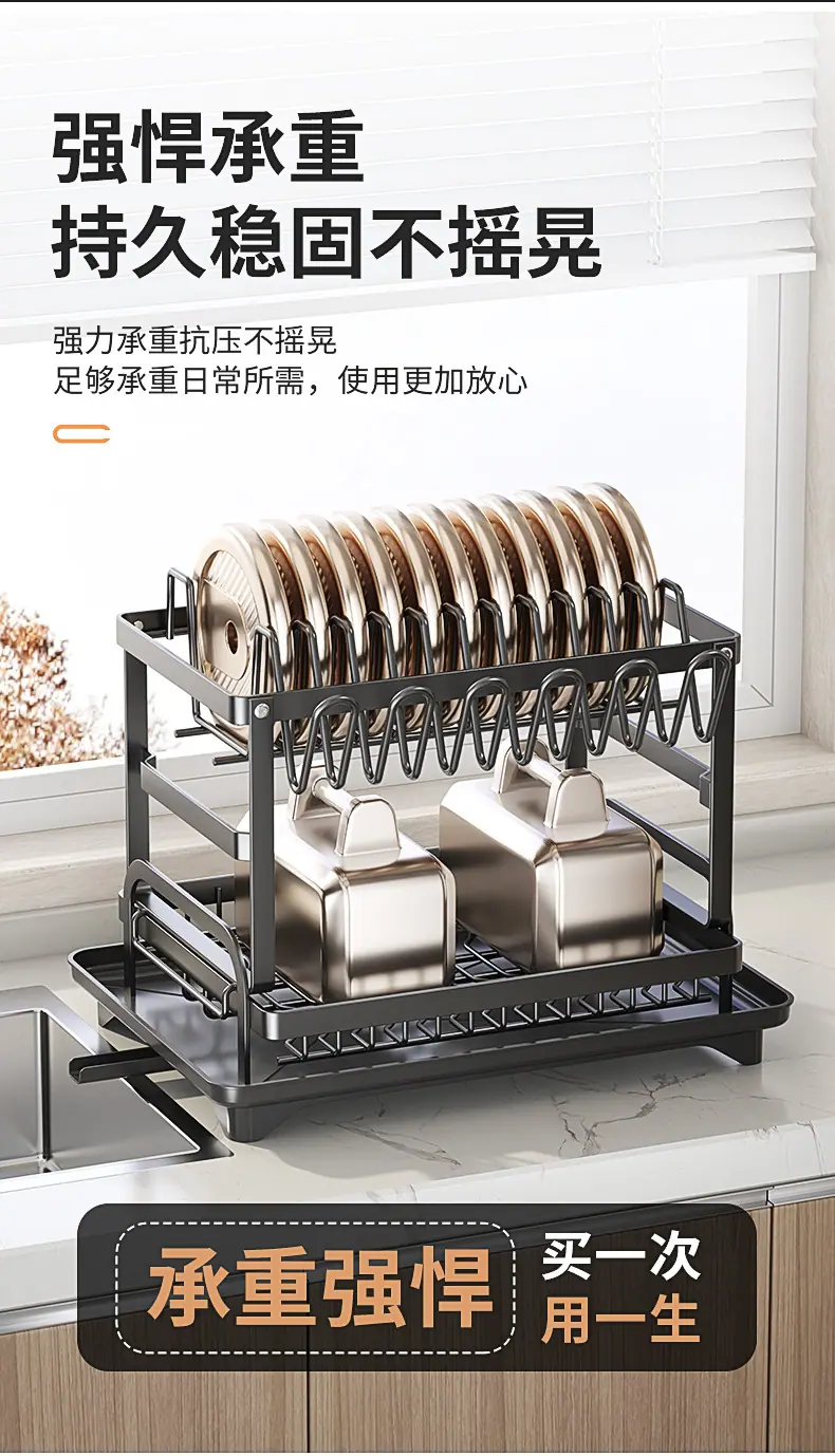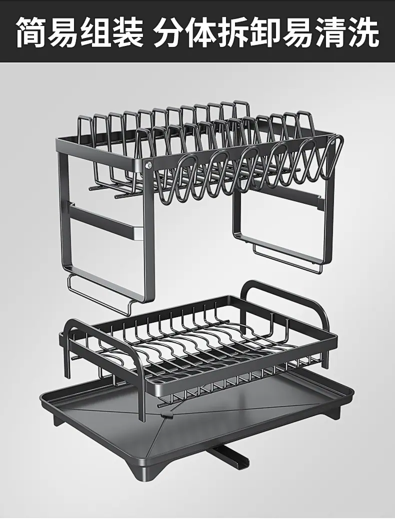 Prateleira de Armazenamento de Cozinha para Comércio Exterior Prateleira Dupla para Pratos Armazenamento de Tigelas e Pratos Prateleira Drenante Organizador de Louças e Copos Doméstico