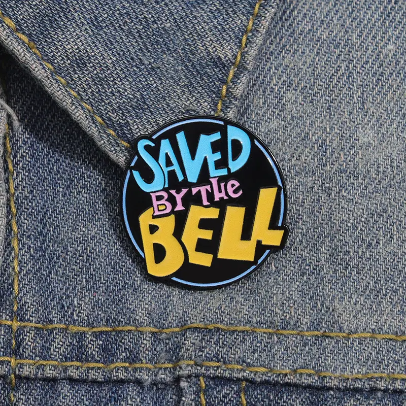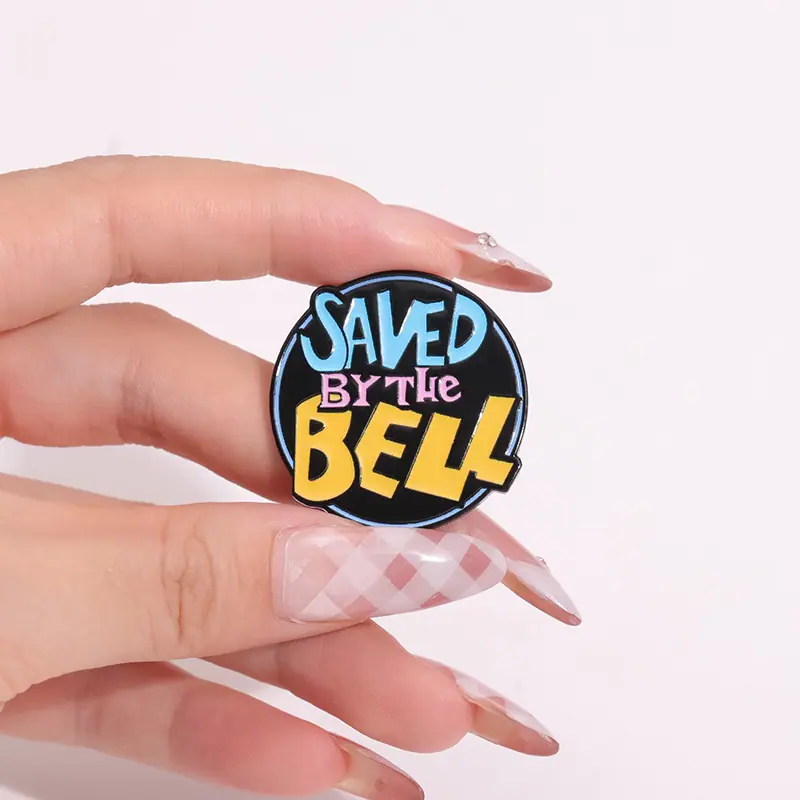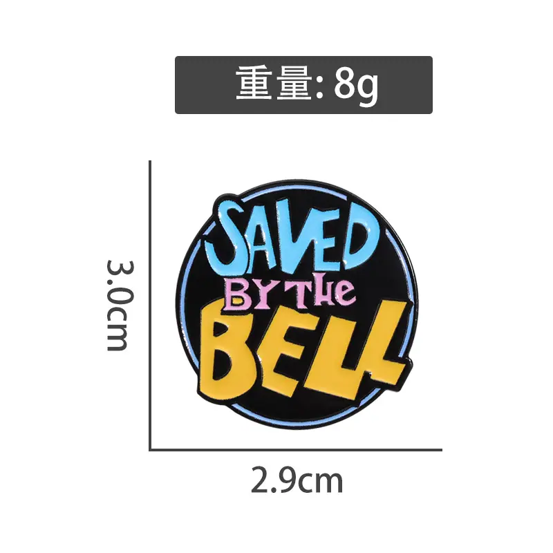 Crachá de lembrança com logo de sino salva-vidas criativo europeu e americano, broche de liga geométrica redonda em gota