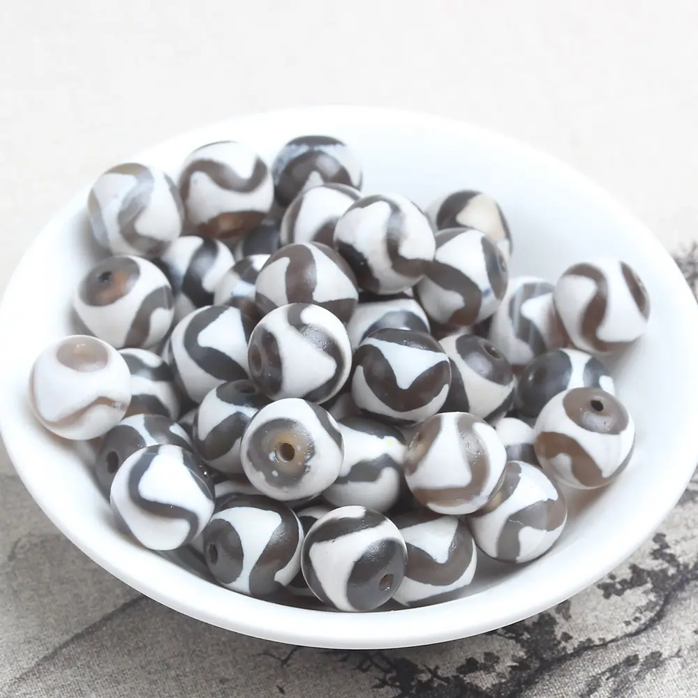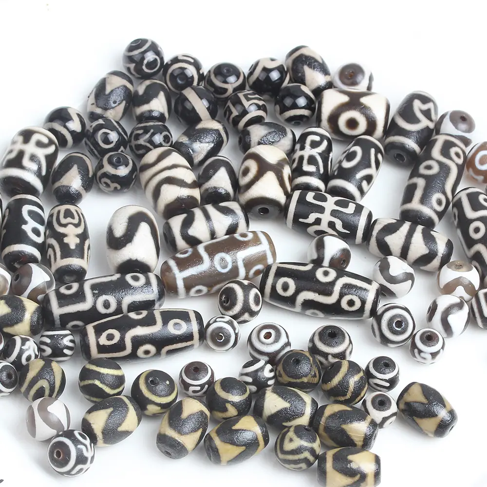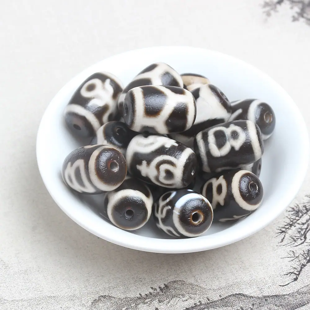 Nome do Produto: Ágata Negra Dzi Contas Redondas Contas Cilindricas