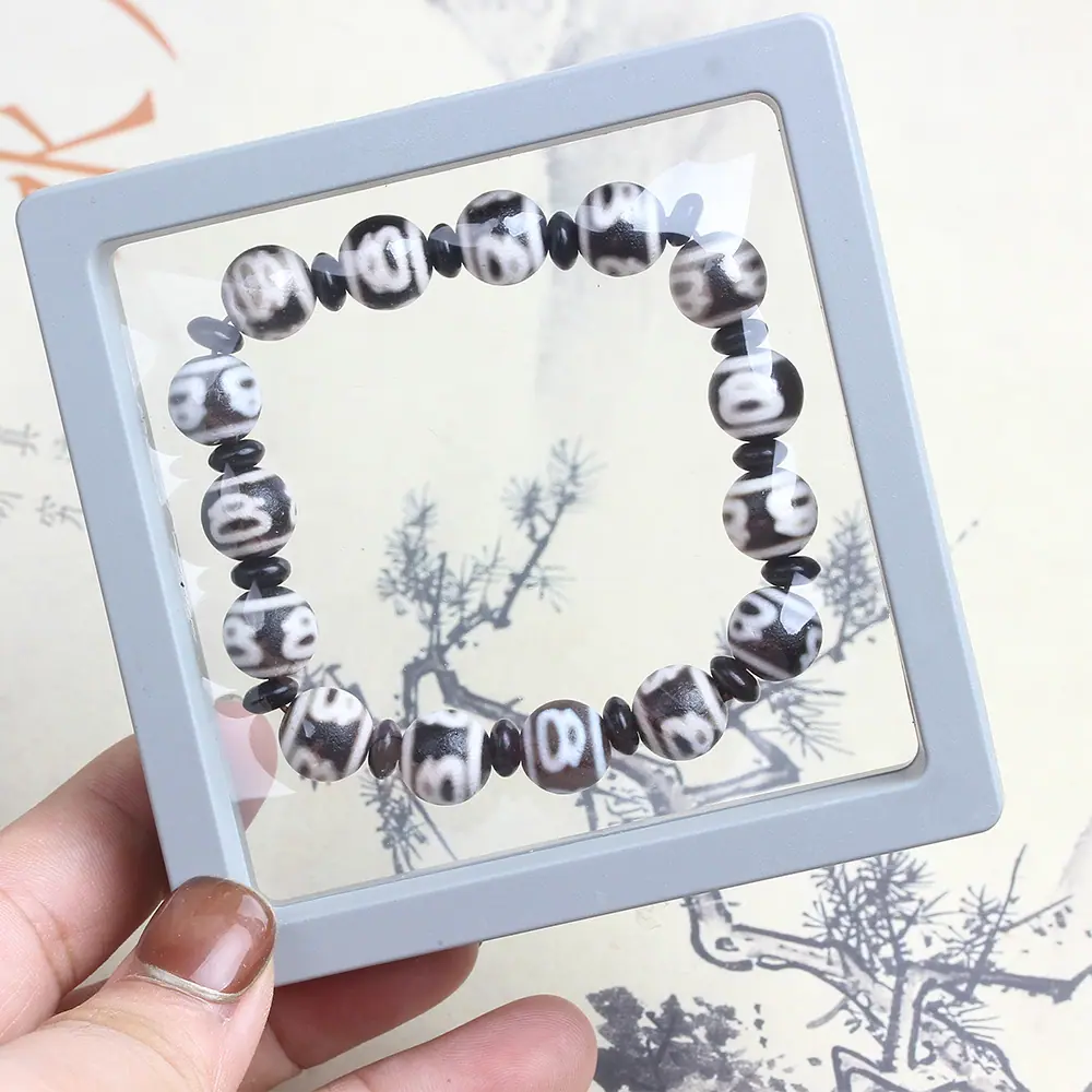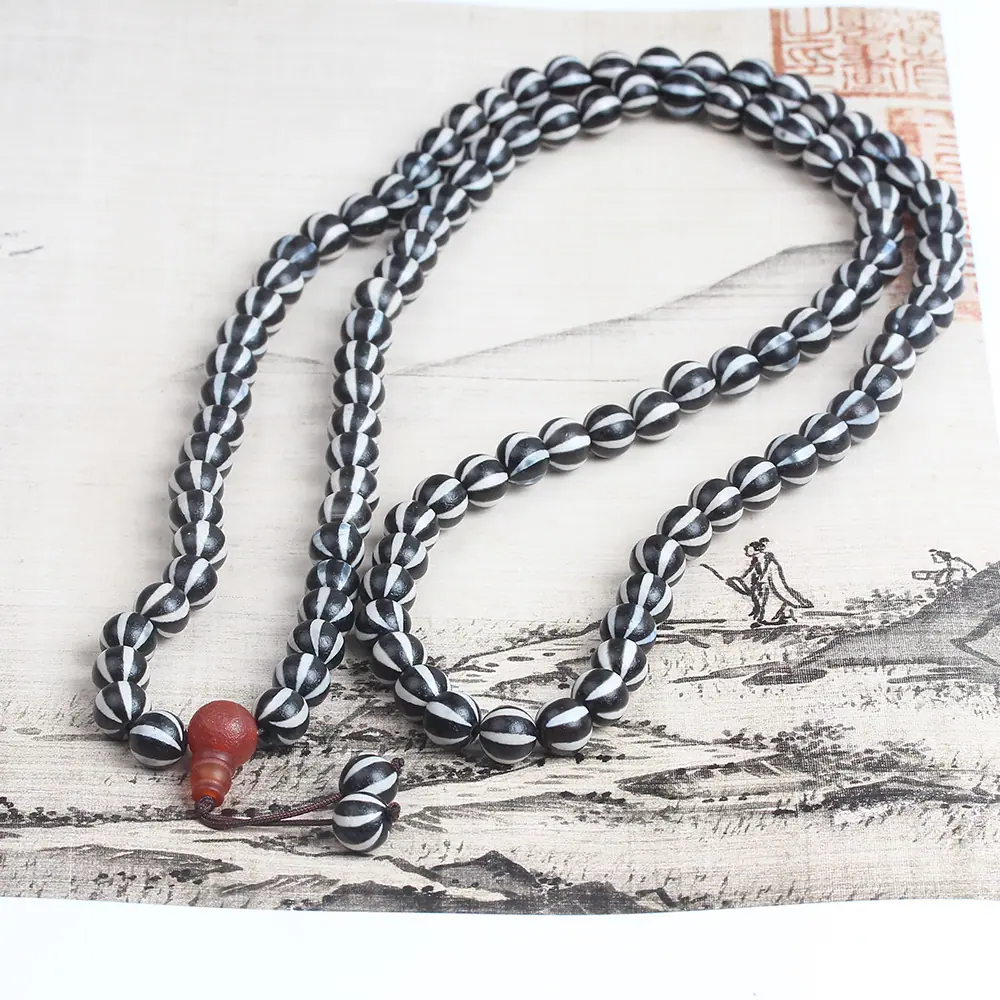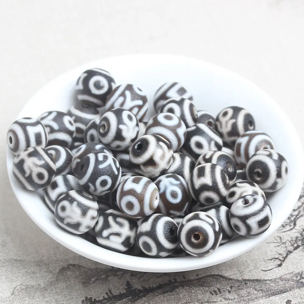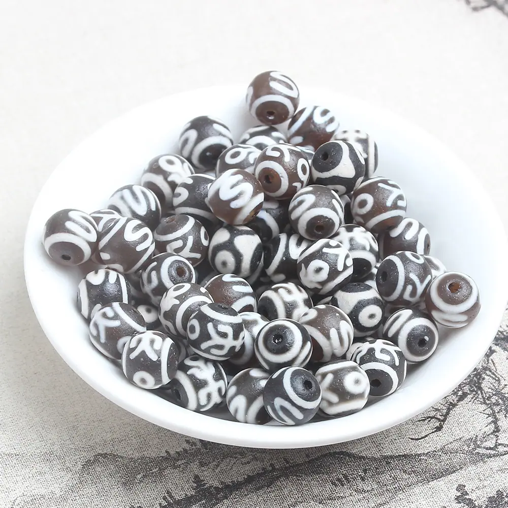 Nome do Produto: Ágata Negra Dzi Contas Redondas Contas Cilindricas