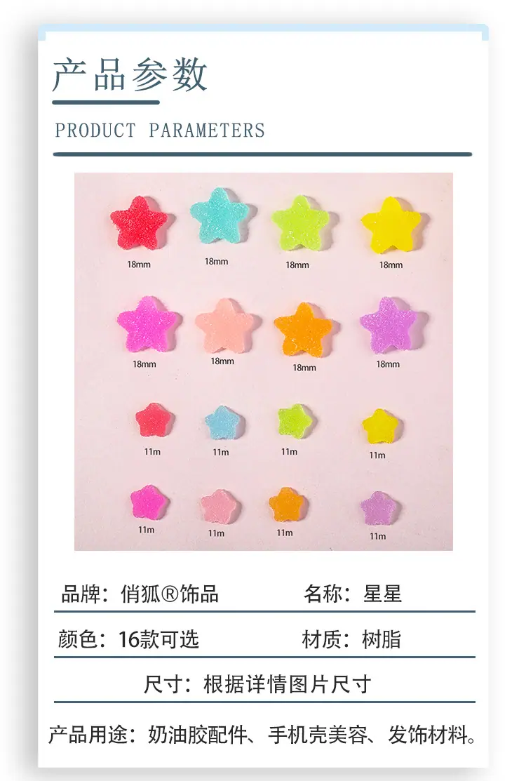 Acessórios de Resina Estrela Gummy Efeito Gelatina DIY Cola de Creme Patch para Capa de Celular Caixa de Armazenamento Material para Presilha de Cabelo