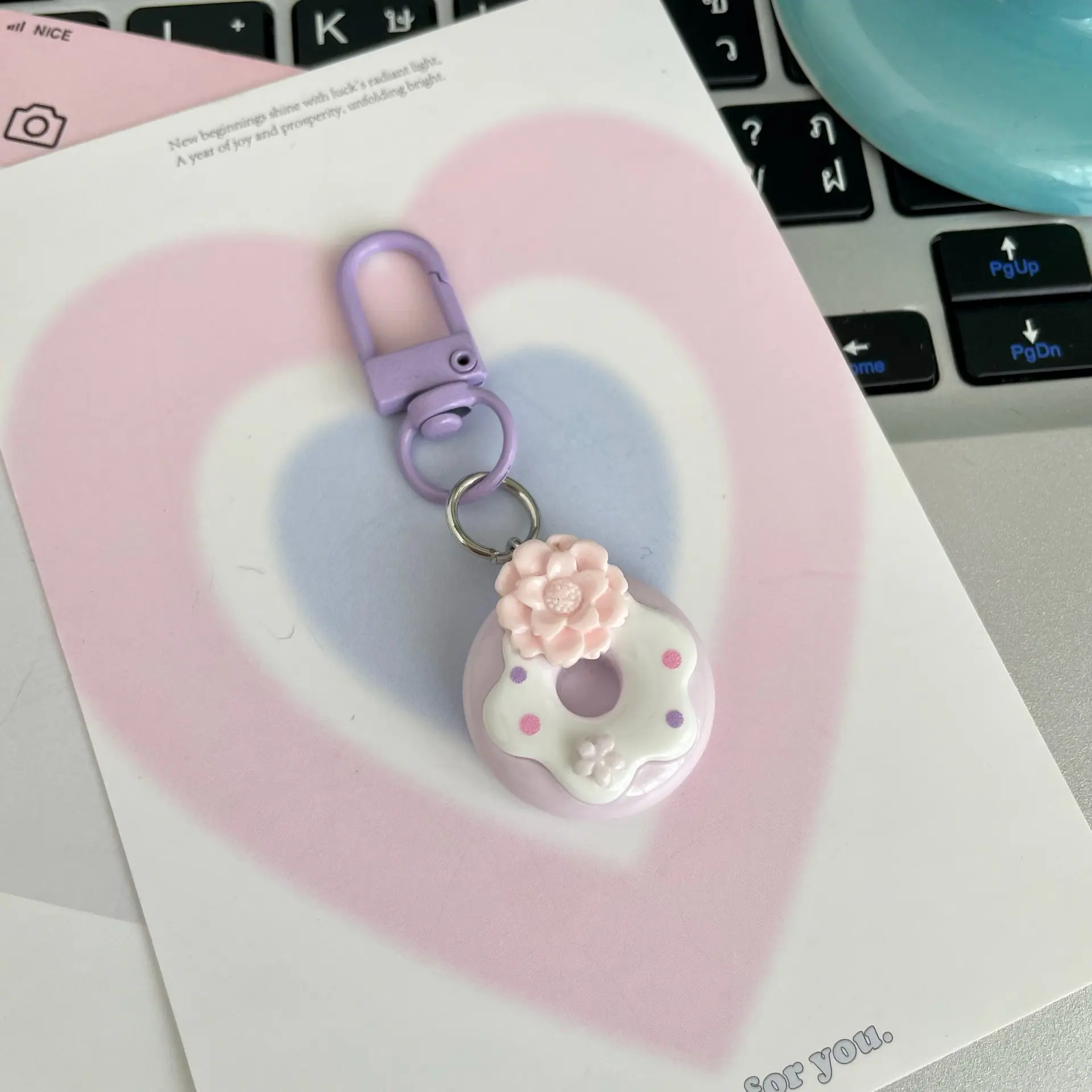 Chaveiro de Rosquinha Estilo Chinês Fofo, Pingente de Brinquedo de Comida Artificial Fofo, Acessórios Criativos para Mochila Escolar, Presente para Casal Amigo