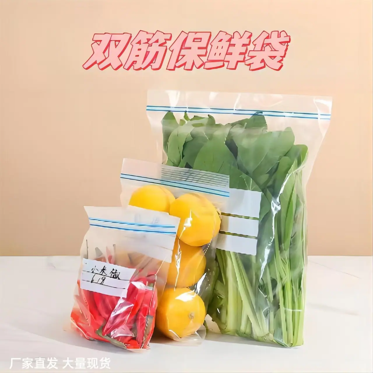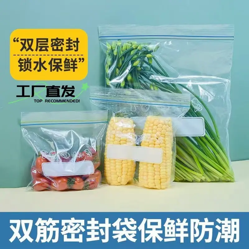 Saco de Preservação com Costela Dupla Doméstico em Massa Sacola Densa Retrátil Saco de Armazenamento para Geladeira Grau Alimentício Saco Espessado Autovedante