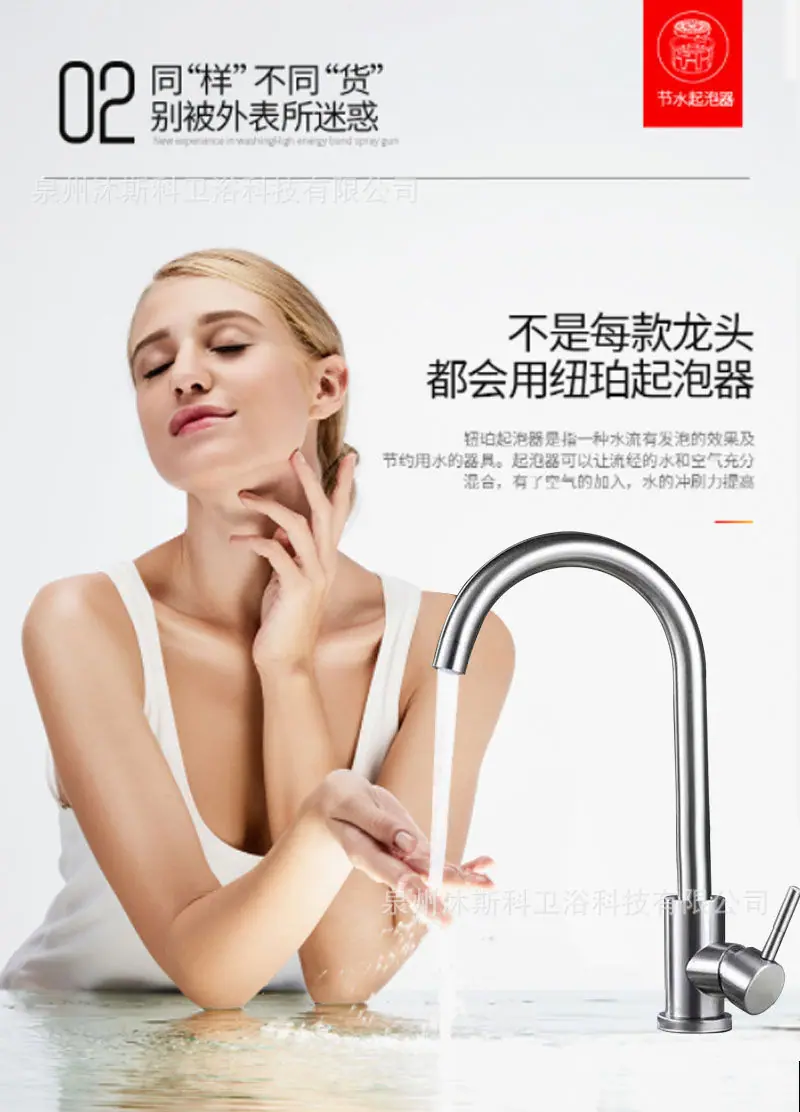 Torneira de Cozinha de Aço Inoxidável Torneira de Pia Projeto Transfronteiriço Atacado Cozinha Giratória Torneira Quente e Fria