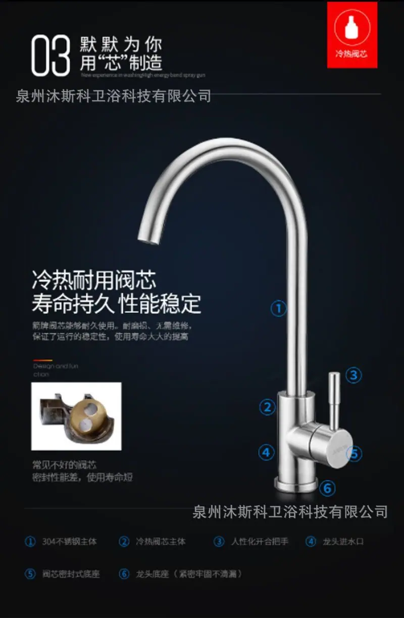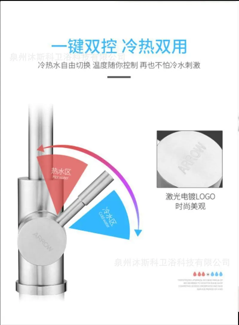 Stainless steel kitchen hot and cold faucet