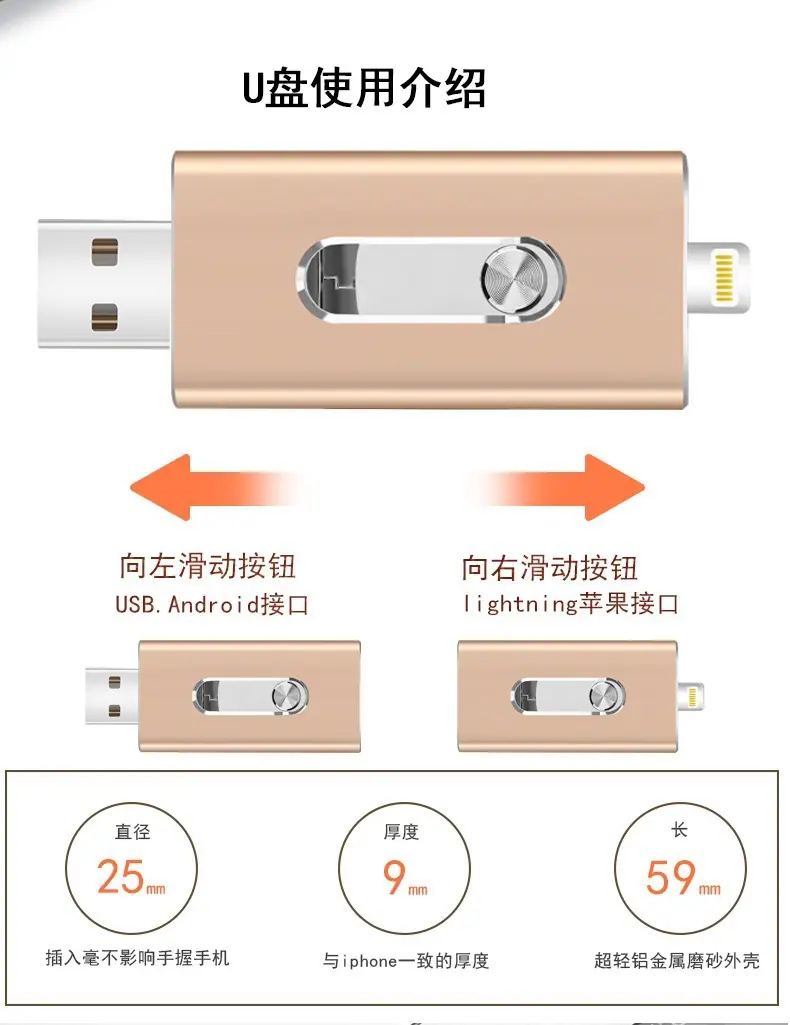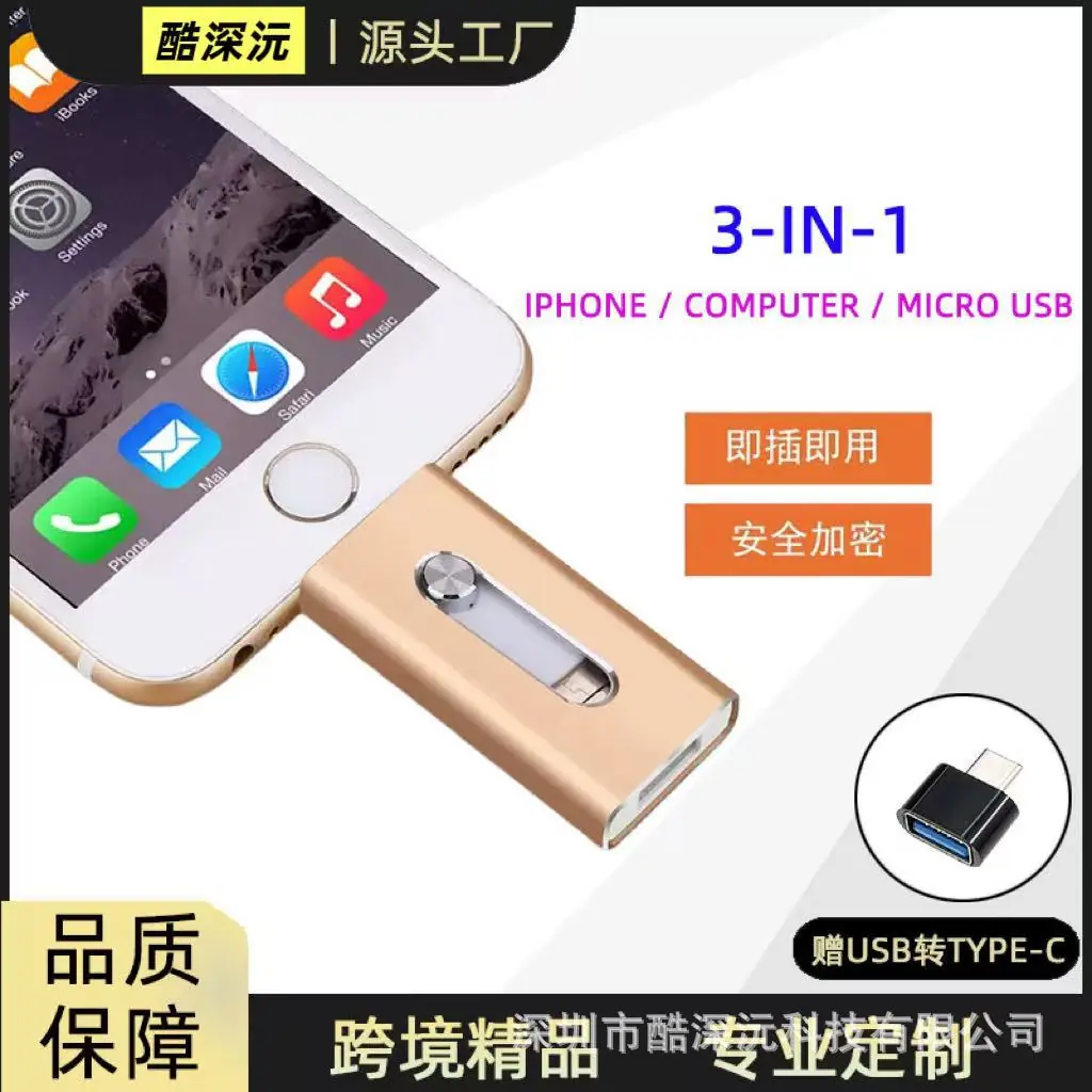 Atacado Adequado para Celular Apple Pen Drive USB Três em Um Pen Drive USB Apple 1TB Grande Capacidade 64g Pen Drive USB Universal para Computador Android