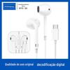 Interface Bai Tong Tipo C para iPhone 16 Pro Max P60 X60 Fone de ouvido com fio de controle de plugue de ouvido digital
