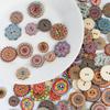 Peça redonda de madeira multicolorida Botão pequeno impresso Duo clássico estilo europeu série de padrões retrô DIY Acessórios decorativos Botão