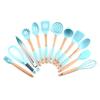 Puxador de madeira silicone pesca 12 peças Faia silicone utensílios de cozinha terno de armazenamento balde antiaderente panela de cozimento pá colher