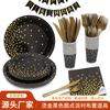 Louça Transfronteiriça Nova Estampagem a Quente Bolinhas Pretas Copo de Papel Espessado Prato de Papel para Torta Dourado Faca, Garfo, Colher, Papel de Seda Decoração de Festa