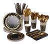 Louça Preta com Bolinhas Bronzeadas Copo de Papel Espessado Prato de Papel para Torta Faca, Garfo, Colher Dourados Papel de Seda Suprimentos para Decoração de Festa Conjunto