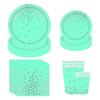 Saída de fábrica Mint Green Hot Silver Small Dot Descartável Placa de 9 polegadas Placa de 7 polegadas Copo de papel Tecido Festa terno de festa