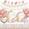 2024 Novo Talheres de Festa de Toranja Prato de Papel Menina Bebê Descartável Copo de Papel Toalha Arranjo Decoração de Toalha de Mesa
