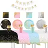Descartável Bronzing Bandeja de Papel Copos de Papel Feliz Aniversário Bolo Piquenique Festa Venda por atacado Bandeja de flores descartável Conjunto de louças