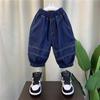 Calças jeans infantis 2024 verão novos meninos calças estilo ocidental calças da moda bebê maré uma geração de cabelo